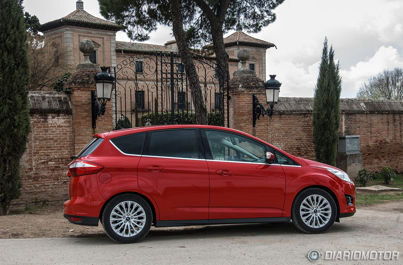 El Ford C-MAX sigue haciendo gala de una estética muy familiar. Sus proporciones se mantienen aunque para lograr un diseño más agresivo y moderno se ha estilizado la caída del techo, el vértice de la línea de ventanillas con el perfil inferior cromado y el pico que forma con el pilar C, el tamaño de la parrilla frontal, el diseño de los grupos ópticos y los faros o el corto voladizo anterior bajo el que ahora reposa una nueva generación de motores más eficientes y frugales.