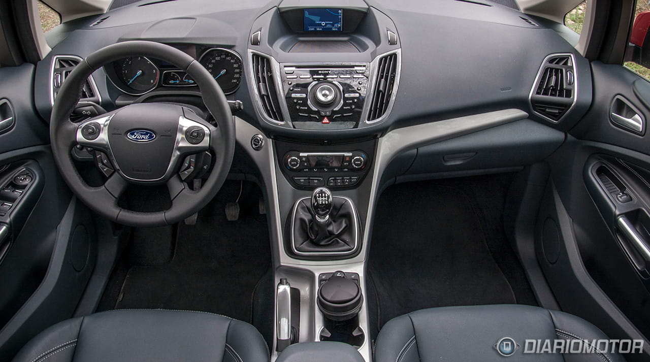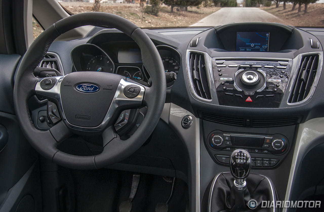 La calidad del habitáculo salta a la vista que ha mejorado considerablemente para recordarnos que Ford quiere conquistar tanto al cliente que busca la opción más asequible del mercado como a aquellos que buscan algo de tipo premium. Recubrimientos de plástico robustos, rugosos y algo mullidos sobre el salpicadero, tiradores cromados agradables al tacto y con sensación de calidad. El volante está recubierto de piel y aunque es algo grande, razonablemente por su naturaleza de monovolumen, es bastante agradable al tacto y aparenta calidad.