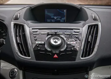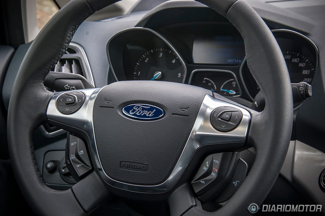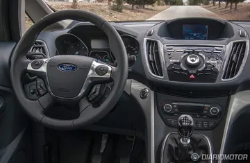 Si notables son los cambios exteriores aún más lo son a bordo del Ford C-MAX. El sencillo puesto de conducción de su predecesor se ha transformado en una cabina orientada al conductor. Frente a nosotros tenemos un volante multifunción de cuatro radios que integra todos los controles posibles de una forma que, a priori puede resultar confusa, pero que a la larga y una vez que nos familiarizamos con la posición de todos los elementos resulta intuitiva y sencilla. Todo sea para evitar que desviemos la mirada de la carretera.