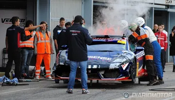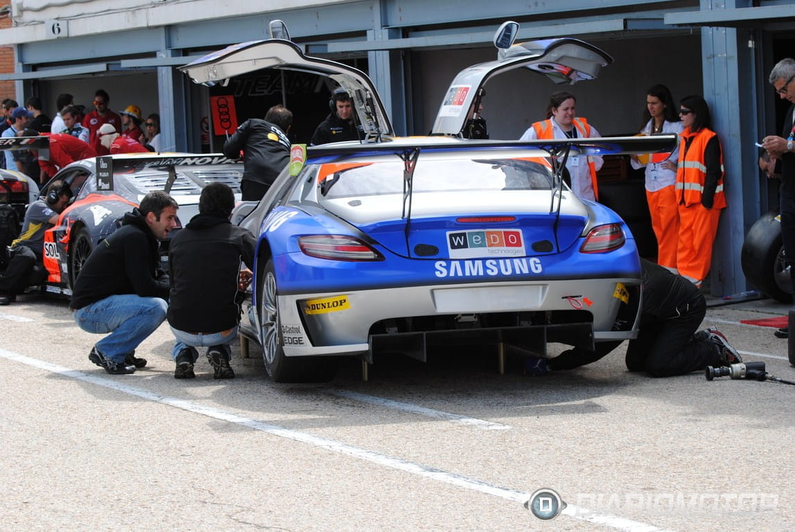 El Mercedes SLS AMG GT3 se veía obligado a abandonar nada más comenzar por un incidente que le dejaba con algún que otro rasguño, como más tarde pudimos comprobar en el paddock. El Porsche 997 RSR de Drivex y el Ford GT se encargaban de aderezar su falta disputándose la primera posición mientras que los Ferrari 430 nos dejaban sin palabras, y prácticamente sin oídos a todos los presentes en cada pasada por la recta de meta y cada visita a boxes.
