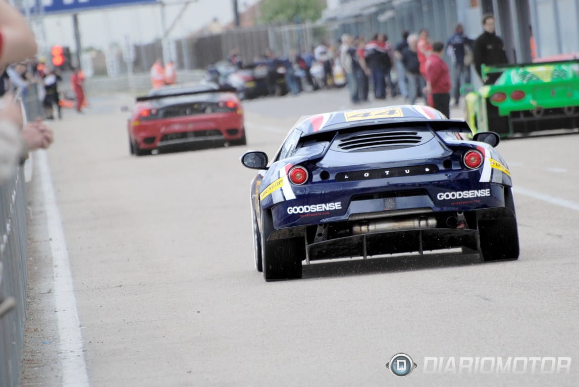 Allí nos encontramos con representantes llegados desde la casa del cavallino, dos Ferrari 430, también obras de arte sacadas del museo y llevadas a la pista made in Lamborghini, un Mercedes SLS, con su especial porte, e incluso un representante de cuatro ruedas británico, un Lotus Evora. Por supuesto, no podemos dejar a un lado a los preciosos Maserati del trofeo monomarca o los divertidos Caterham Super Seven.