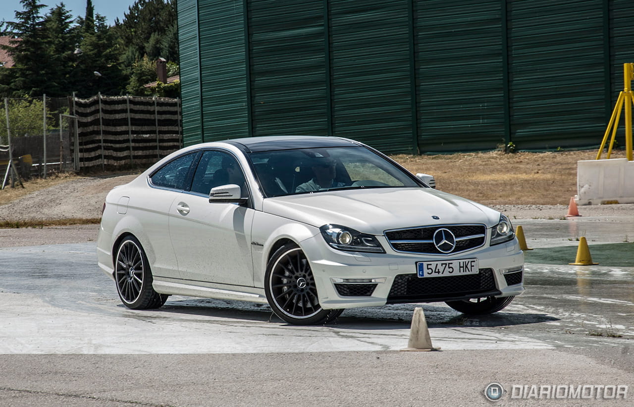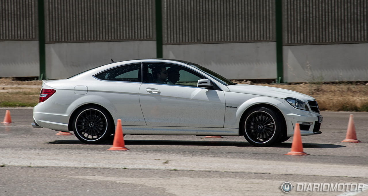 Tras haber disfrutado muchas vueltas con un biplaza como el SLK, piensas que todo te sabrá a poco, pero nada más lejos de la realidad. El Mercedes C 63 AMG Coupé es otro deportivo que además cuenta con plazas traseras y no se amedrenta ante el peso pluma de AMG. Por otro lado por su lado más práctico y un precio de 81.660€, y digo sólo por que es más económico que un SLK, me dejó completamente descolocado. Su sobrepeso lo corrige con efectividad un motor de 6.208 cm3, 457 CV de potencia y la friolera de 600 Nm.