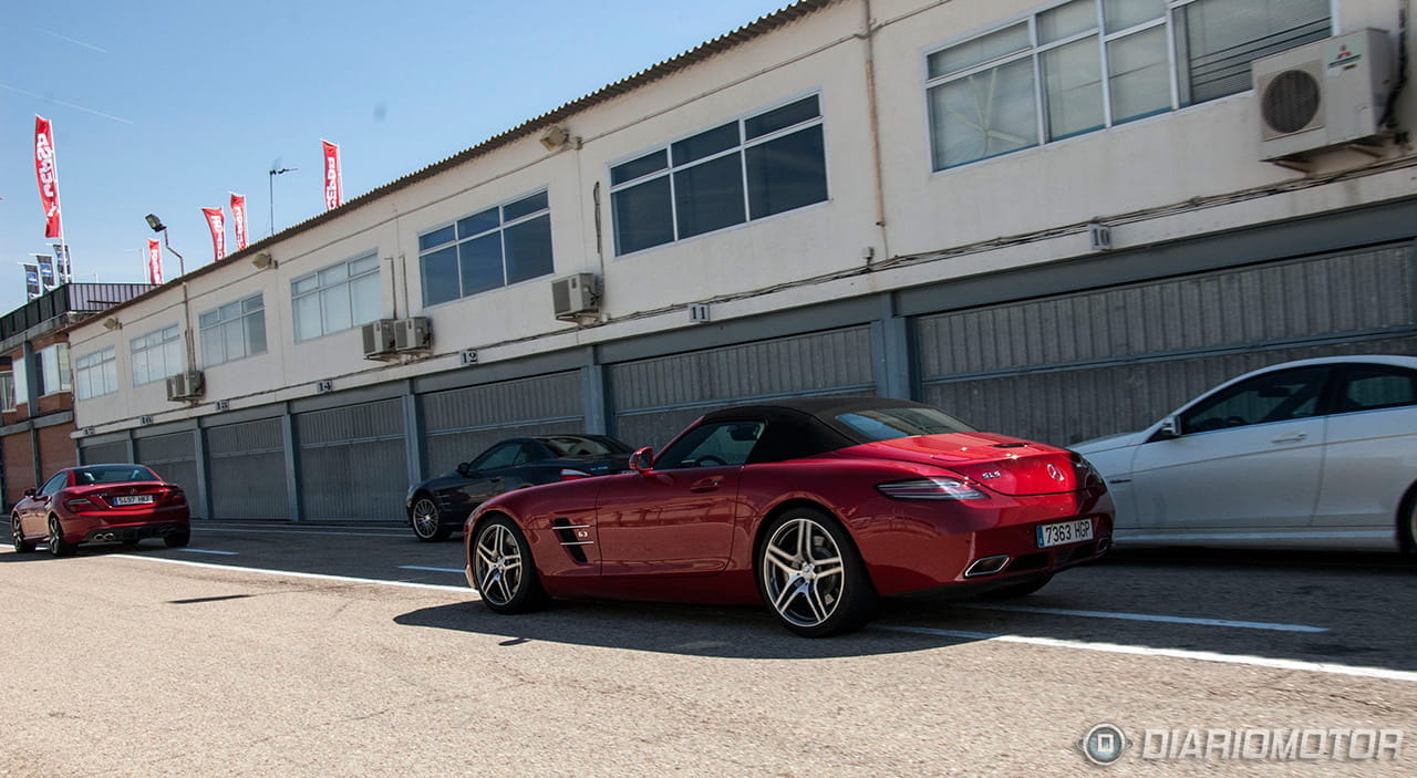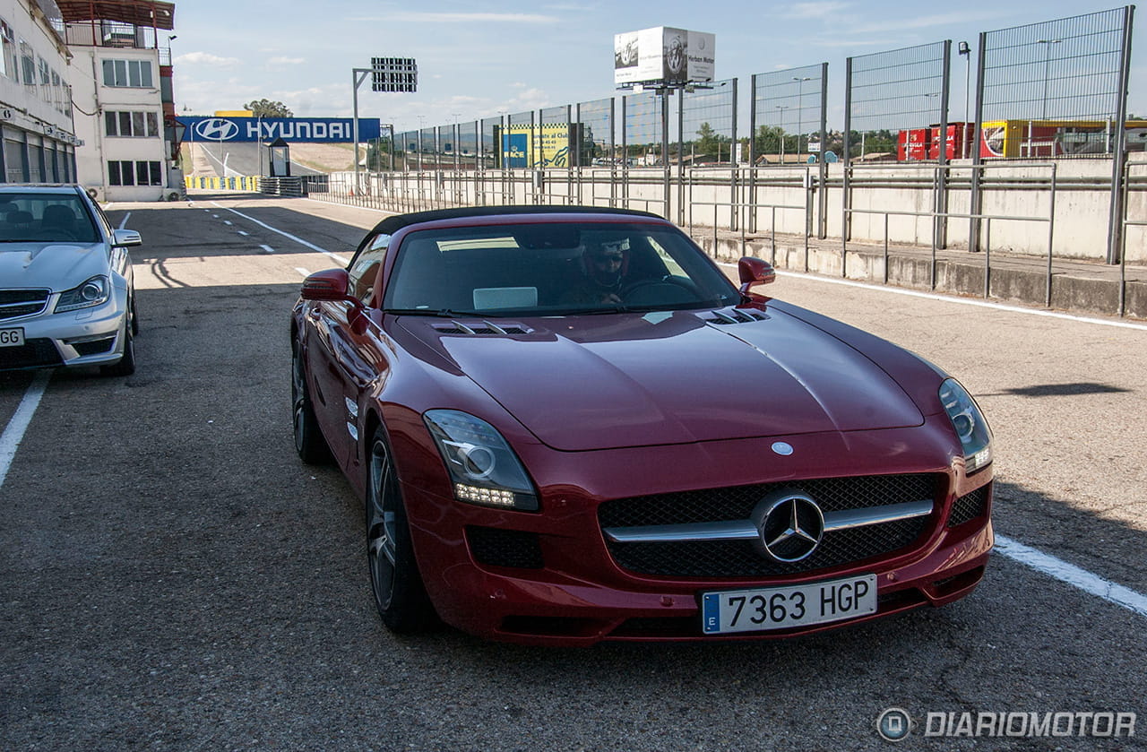 Y para terminar llegaba el postre, el nuevo Mercedes SLS AMG Roadster. ¿Qué podríamos decir de un deportivo de 571 CV? La primera vez que probé el Mercedes SLS AMG me sorprendió el nivel de decibelios que inundaba el habitáculo, la sorpresa es que en este caso pese al techo de lona no me resultó que el ruido fuera mucho más incómodo (para el que considere incómodos los rugidos de un V8) con la capota cerrada. En el apartado dinámico me sería complicado asegurar si se aprecia tanto la merma de prestaciones y rigidez de la carrocería como cabría esperar.
