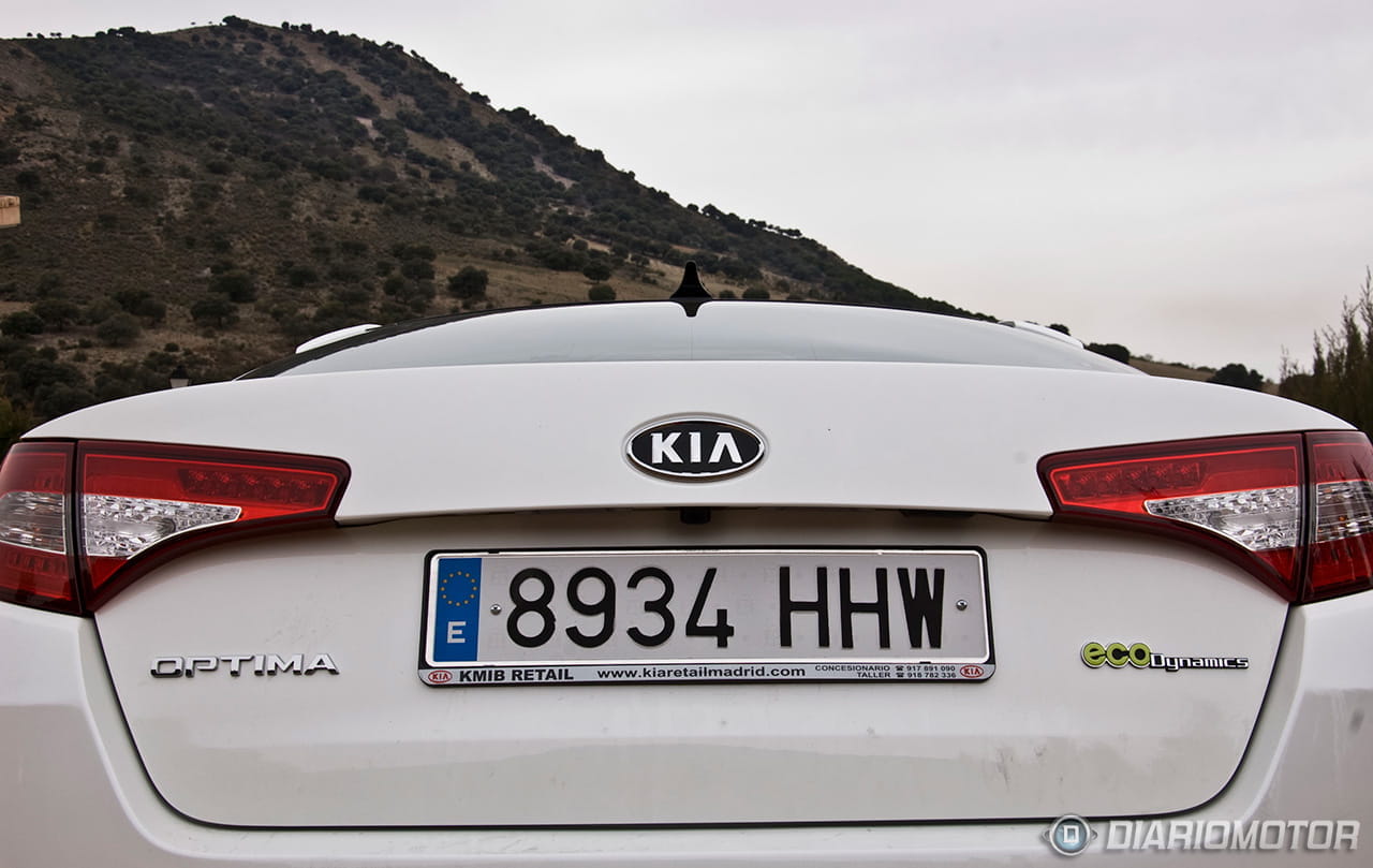 Uno de los platos fuertes que podría revitalizar las ventas del Kia Optima será la introducción del híbrido, probablemente en el cuarto trimestre de este año, con una previsión de consumo mixto homologado de sólo 5.4 litros/100 kilómetros y unas emisiones de CO2 de 129 g/km. Como ven, una mecánica de gasolina con cifras muy similares a las del diésel en vigor, con una homologación en ciclo mixto medio litro por encima de este.