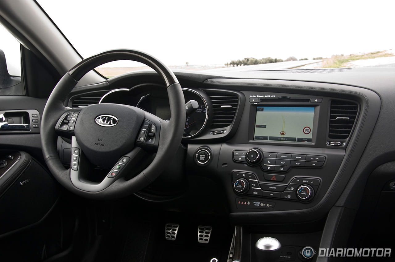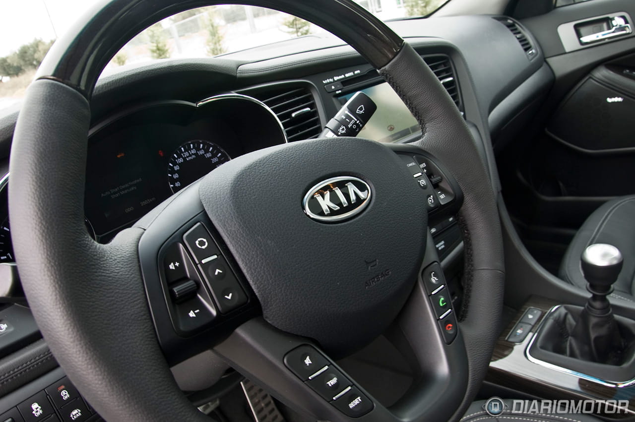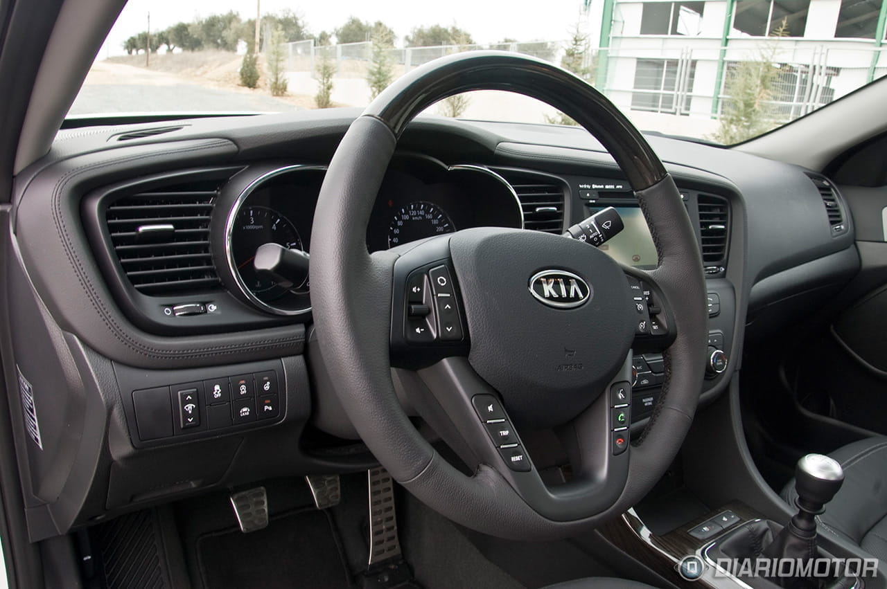 Probablemente en el ámbito de la dinámica el mayor problema llegue con el tacto de la dirección eléctrica, que a pesar de estar asistida de forma variable únicamente resulta cómoda en entornos urbanos, aceptable en tramos de autovía y autopista y demasiado anodina y transmitiendo muy poca información en entornos revirados. Realmente es una pena por que en casi todos los aspectos el Kia Optima se puede medir de tú a tú con algún que otro modelo que con igual equipamiento es considerablemente más caro.
