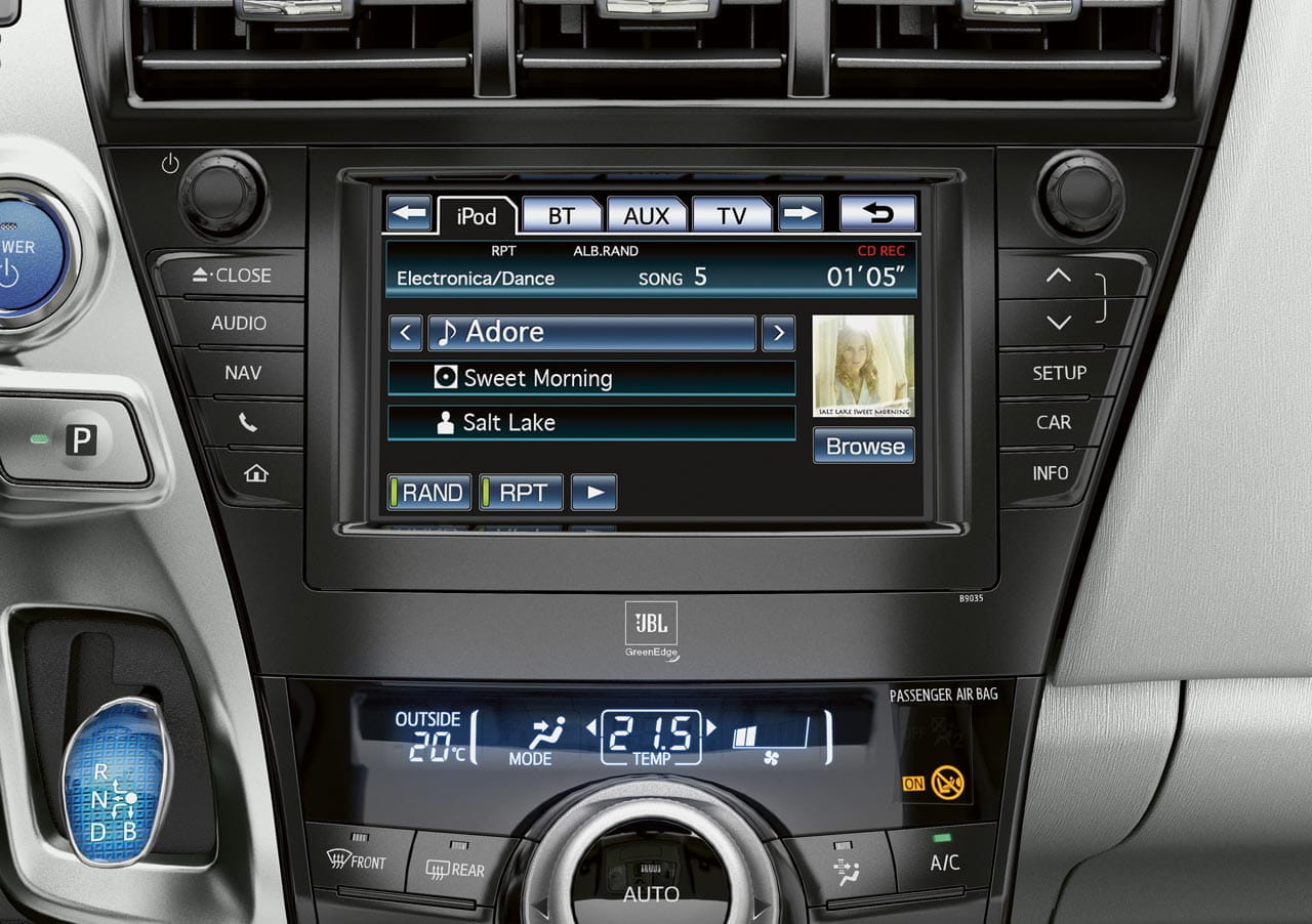 Existen tres acabados para el Toyota Prius Plus: Eco, Advance y Executive. Empezando por el primero, Eco, lleva de serie llantas de 16 pulgadas, cristales traseros oscurecidos, sensor de lluvia, sistema de arranque sin llave y el sistema Toyota Touch (con pantalla táctil, Bluetooth y entrada USB).
