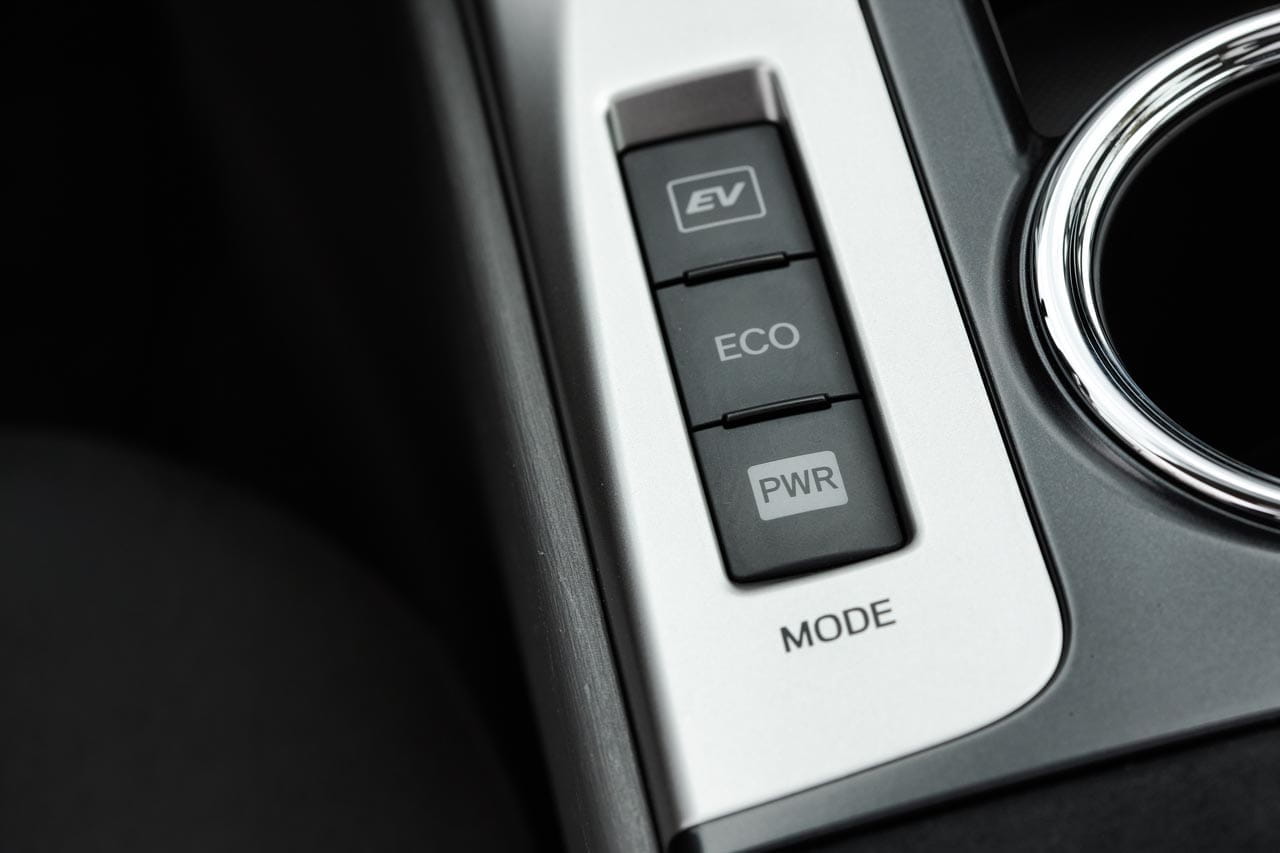 A la hora de conducir podemos elegir entre tres modos: EV (sólo eléctrico, en determinadas condiciones), ECO (eficiente) y POWER (para sacar la máxima potencia). Elegir entre estos tres modos nos puede ayudar mucho a reducir el consumo.