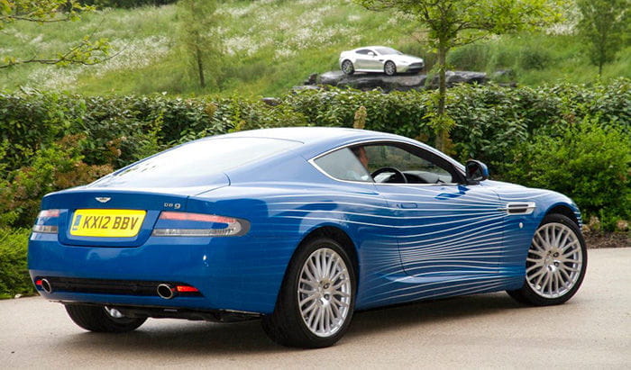De acuerdo con los fans se tomó la decisión de construir este Aston Martin DB9 1M que ven en sus imágenes, con su carrocería de color azul “pitufo” y unas líneas blancas que emanan del frontal, de la parrilla, de las entradas de aire de las defensas y de sus branquias laterales para prolongarse por toda la carrocería. La temática bautizada como Aero pretendía emular el efecto aerodinámico del viento al chocar contra su impoluta carrocería. El resultado, ya lo ven, más propio de un millonario con mal gusto o ganas de llamar la atención que de una marca que siempre se ha distinguido por el lujo y la distinción.