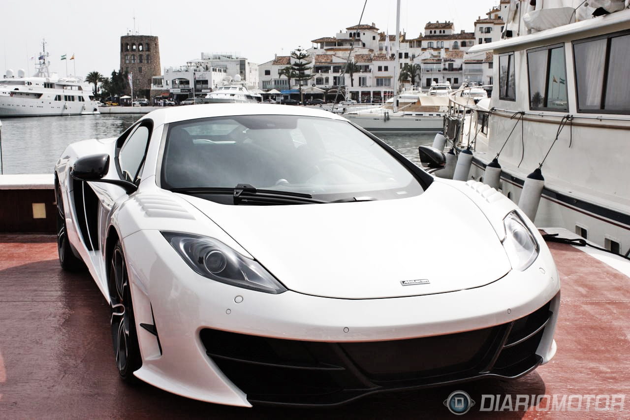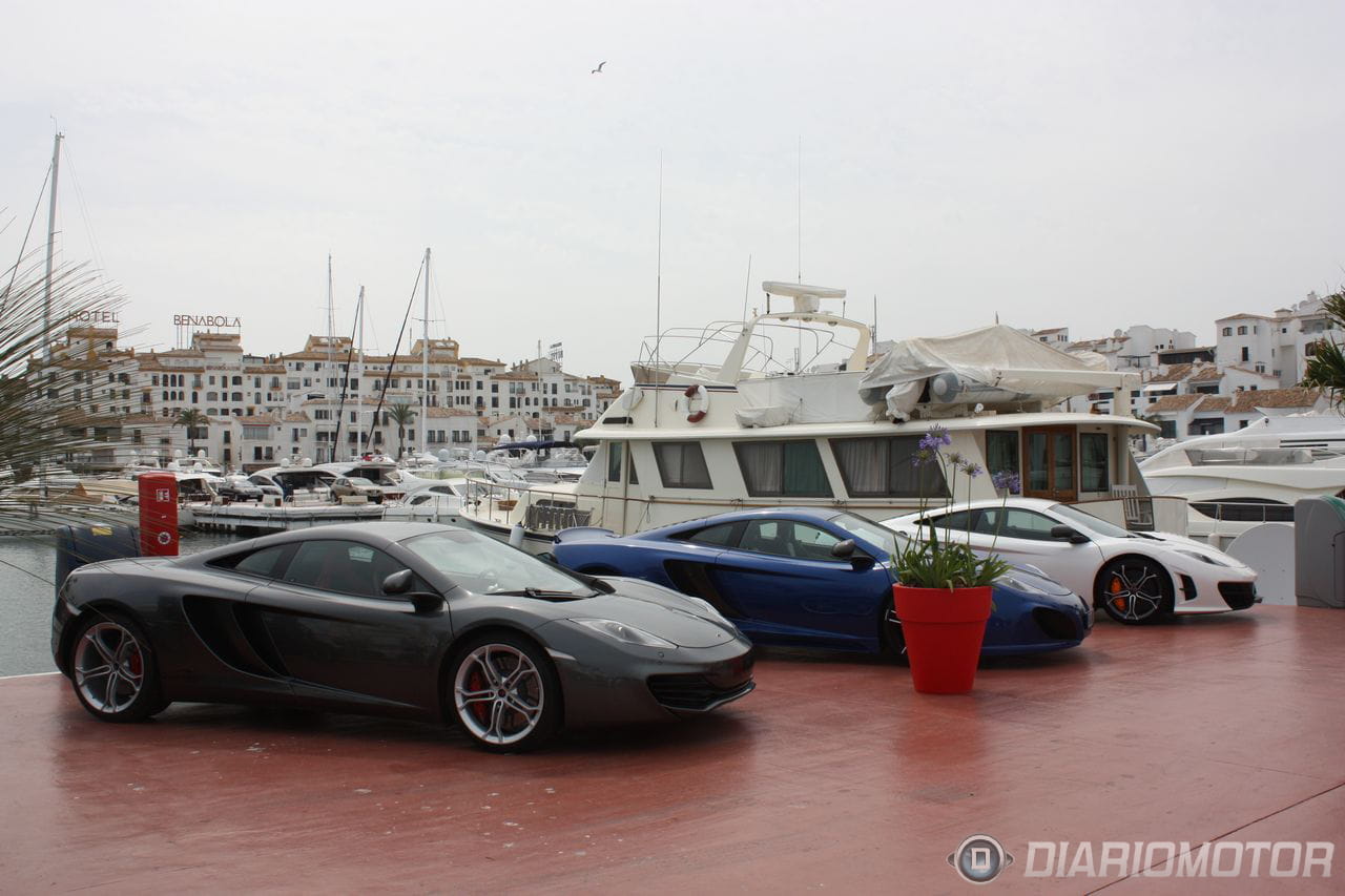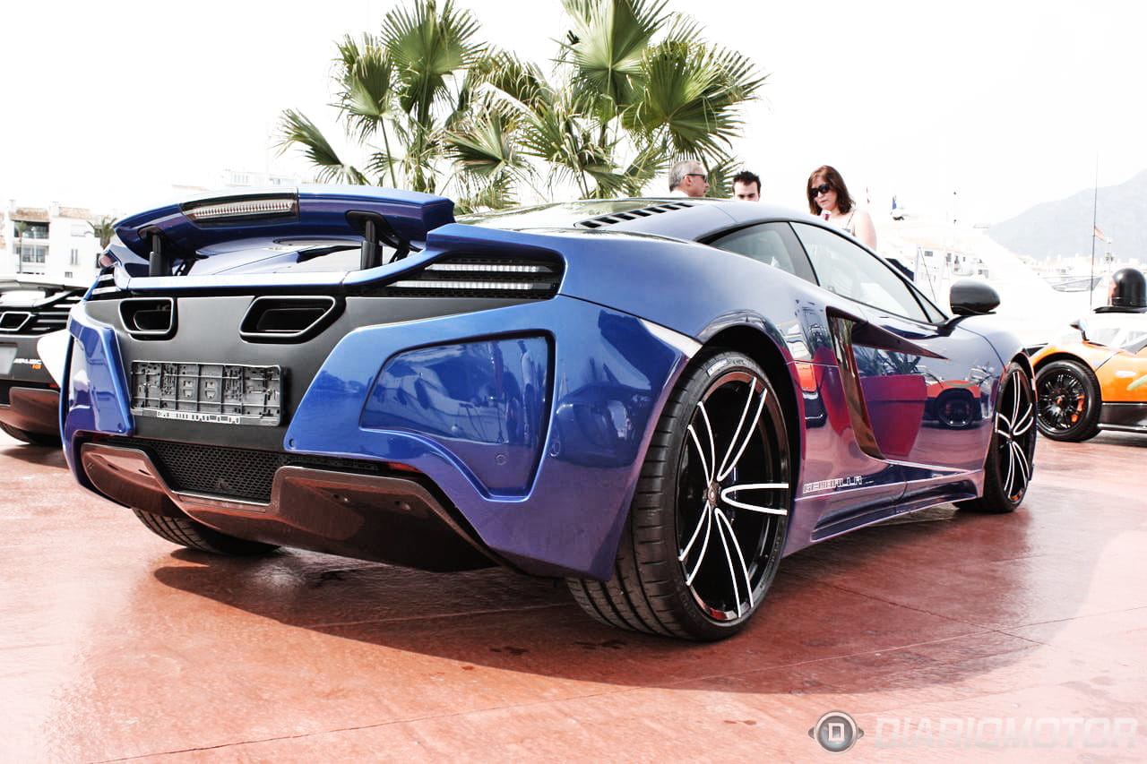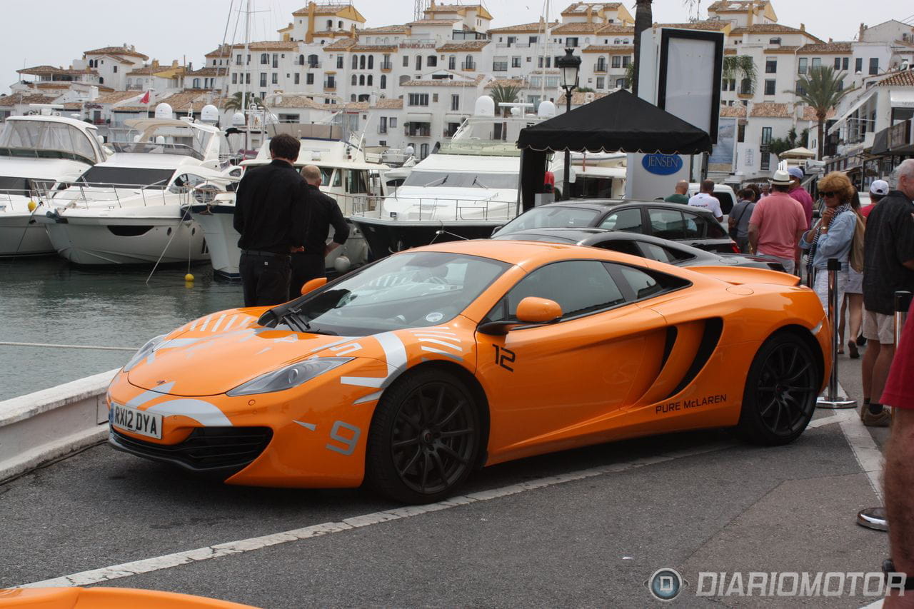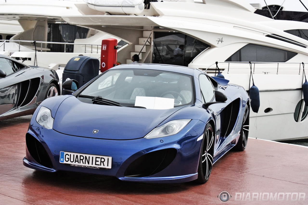 Otras “obras de arte” que estuvieron reunidas en el segundo muelle de Puerto Banús fueron ocho unidades del McLaren MP4-12C, que iban entrando y saliendo continuamente del puerto… ya que había varías decenas de clientes interesados en poder probar esta máquina de motor V8 y 625 CV. Entre todas ellas había dos que sobresalían especialmente: uno de los cinco McLaren MP4-12C High Sport y el Gemballa GT McLaren MP4-12C.