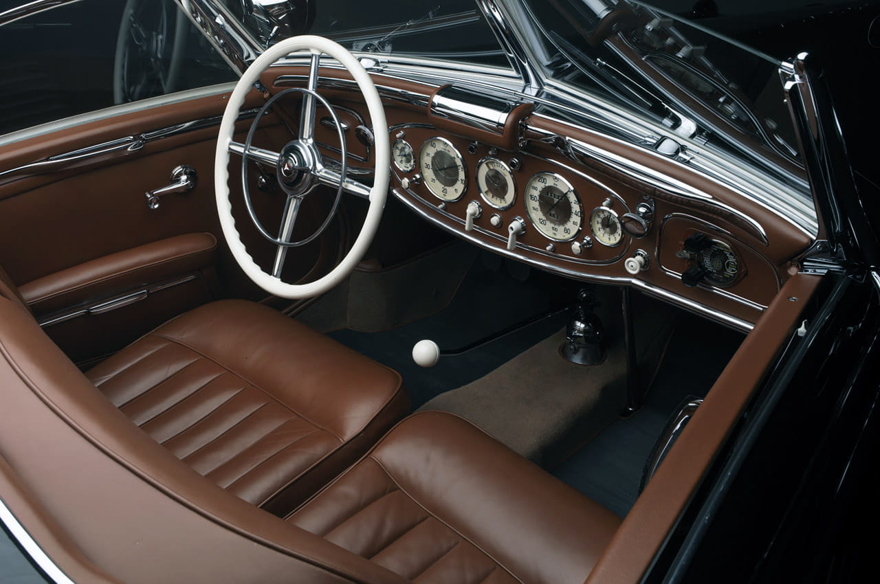 Producido en 1936 con un carrozado modificado diseñado por Hermann Ahrens, este increíble deportivo de super-lujo perteneció a la familia real prusiana, en concreto a la baronesa Gisela von Krieger. Tuvo el buen tino de enviar el coche a Suiza al iniciarse la Segunda Guerra Mundial, lo que lo salvó de ser destruido o robado, como otro sonado caso de un Mercedes 500 K. Tras algunos años terminó en Estados Unidos, donde la baronesa fijó su residencia permanente tras el conflicto.