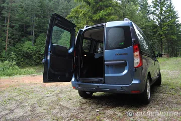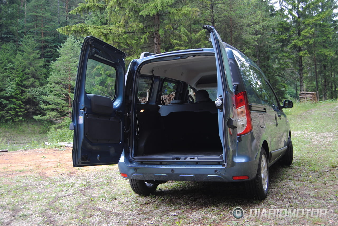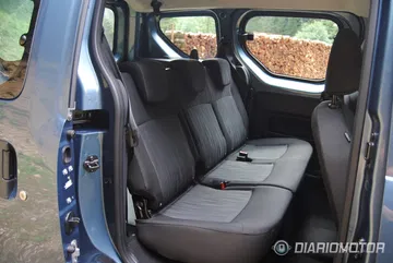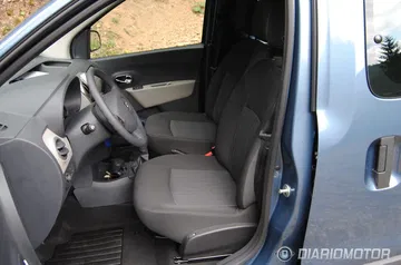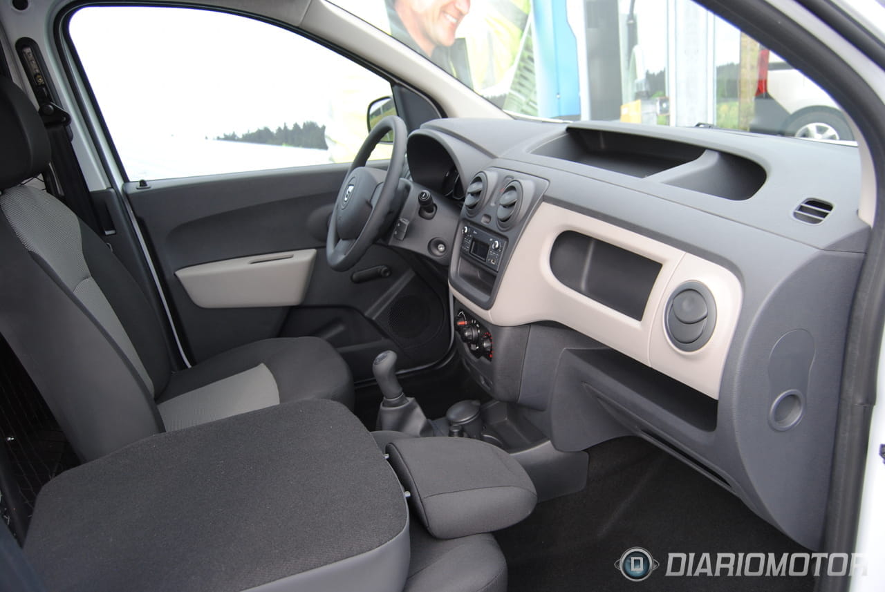 Las plazas traseras cumplen bien para tres adultos, gozando de un buen acceso con la puerta corredera lateral, la más ancha del mercado según Dacia y con un mullido bastante blando, característica extrapolable también a las butacas delanteras que cuentan con ajuste longitudinal y de la inclinación del asiento, no en altura. El volante, se puede regular en altura, pero no en profundidad.