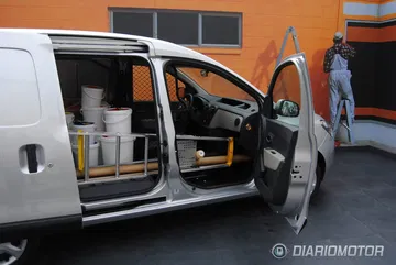 Dacia nos muestra en directo una extensa variedad de adaptaciones: como vehículo para personas con movilidad reducida, con el espacio de carga refrigerado y con el espacio de carga diferenciado del habitáculo por tres tipos de “barreras”: una maciza, con ventana, una de malla y una tubular. Dinámicamente, ninguna diferencia respecto a la versión destinada a 5 pasajeros. S volumen de carga queda definido por un espacio de 3.300 litros y una carga con una longitud de 1.9 metros que en el caso de retirar el asiento (sistema Dacia Easy Seat) aumenta hasta los 3 metro de largo, pudiendo albergar en su interior cargas de hasta 750 kg.