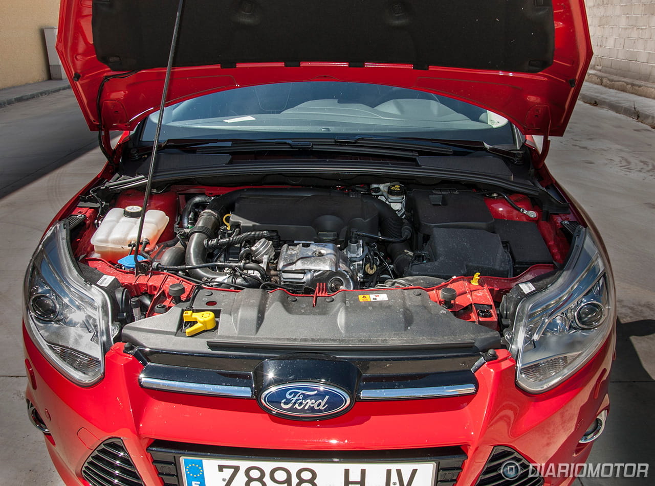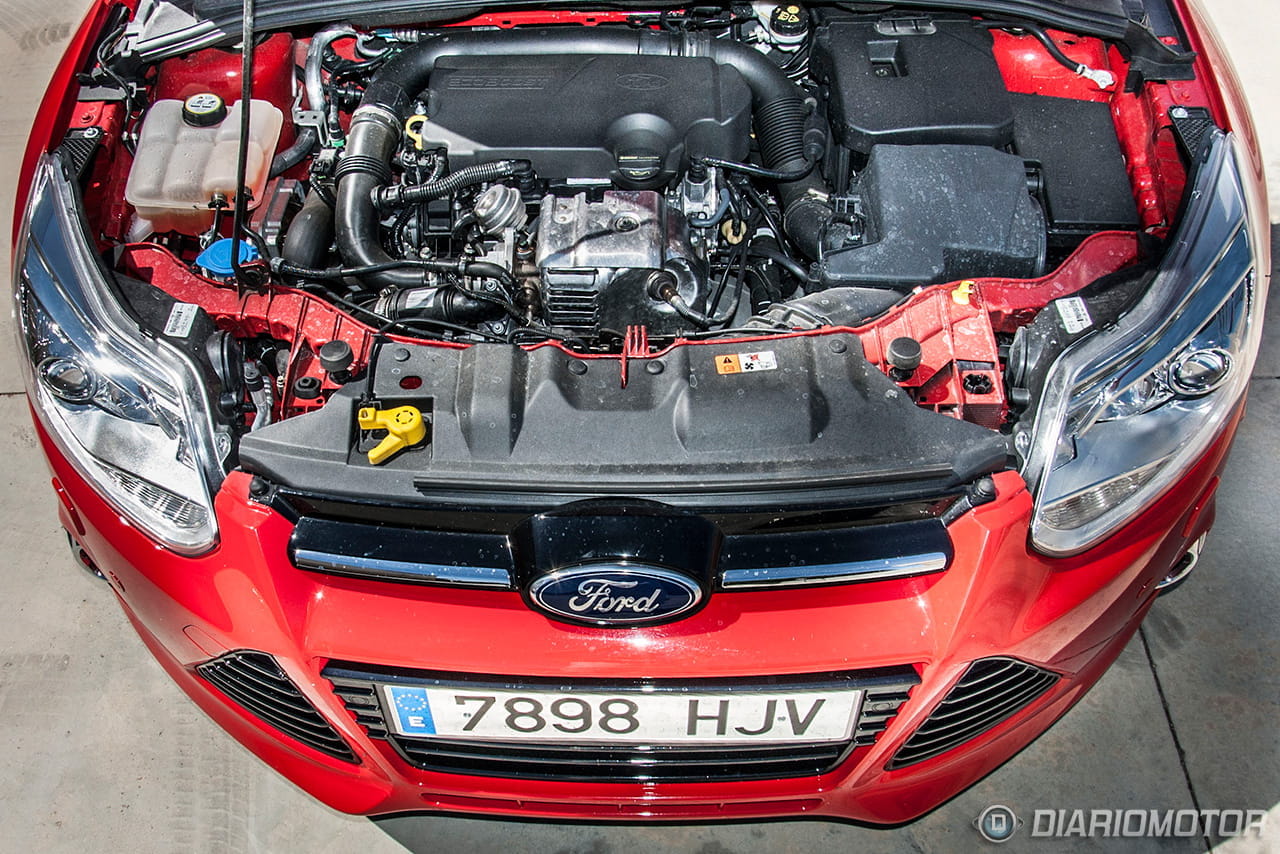 Haremos un breve repaso técnico a este motor para entender de qué estamos hablando. Este Ecoboost en cuestión cuenta con un bloque motor de aluminio diminuto, con un desplazamiento de tan sólo 1.0 litros, tres cilindros y un turbocompresor de baja inercia. Entre las tecnologías que se han empleado para ahorrar combustile y lograr que su consumo homologado parta de 4.8 litros/100 kilómetros y sus emisiones sean de 109 g/km están el start/stop, la bomba de aceite con caudal variable, el sistema de refrigeración independiente o un alternador que sólo trabaja en las retenciones. En la gama Focus se presenta con dos niveles de potencia de 100 y 125 CV.