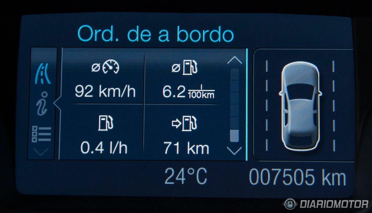 Como de costumbre me propuse realizar mi ruta habitual de prueba de consumos con este Ford Focus Ecoboost de 125 CV. Autovía, poco tráfico, una velocidad aproximada de 120 km/h de marcador (de media fueron 113 km/h), climatizador apagado y trayecto de ida y vuelta para compensar los tramos ascendentes y descendentes, aunque apenas existe desnivel, en un recorrido de aproximadamente 130 kilómetros. El resultado final fue de 5.7 litros/100 kilómetros, un litro por encima del homologado en ciclo mixto y superior a lo que hubiéramos obtenido con un diésel, pero aún así una cifra significativa.
