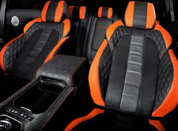 En el interior continúa la personalización, con tapizados en cuero perforado y Alcantara en una combinación de colores negro y naranja, así como otros pequeños detalles como el juego de pedales en aluminio. El resultado es llamativo, pero también hay que tener en cuenta que con una buena percha como es el caso del diseño del Evoque, casi todo lo que se ponga le queda bien…