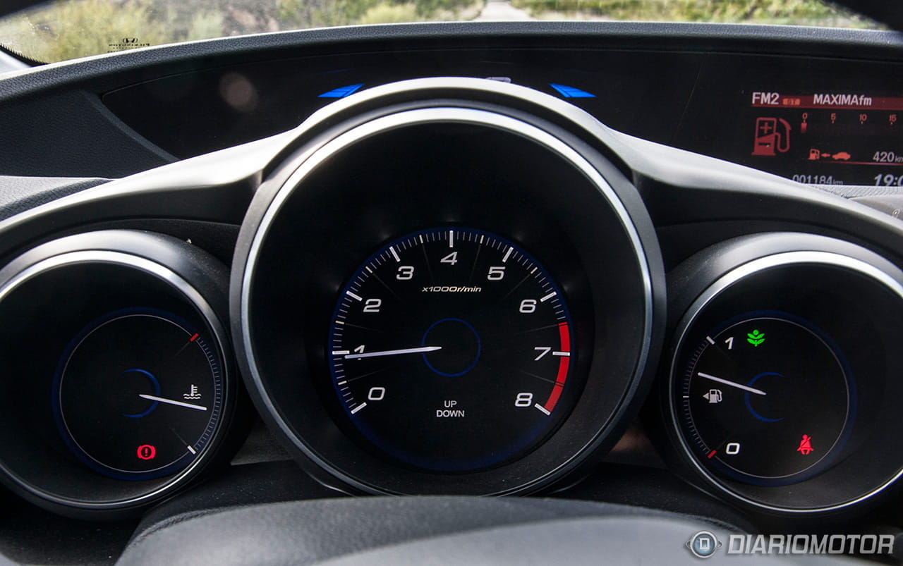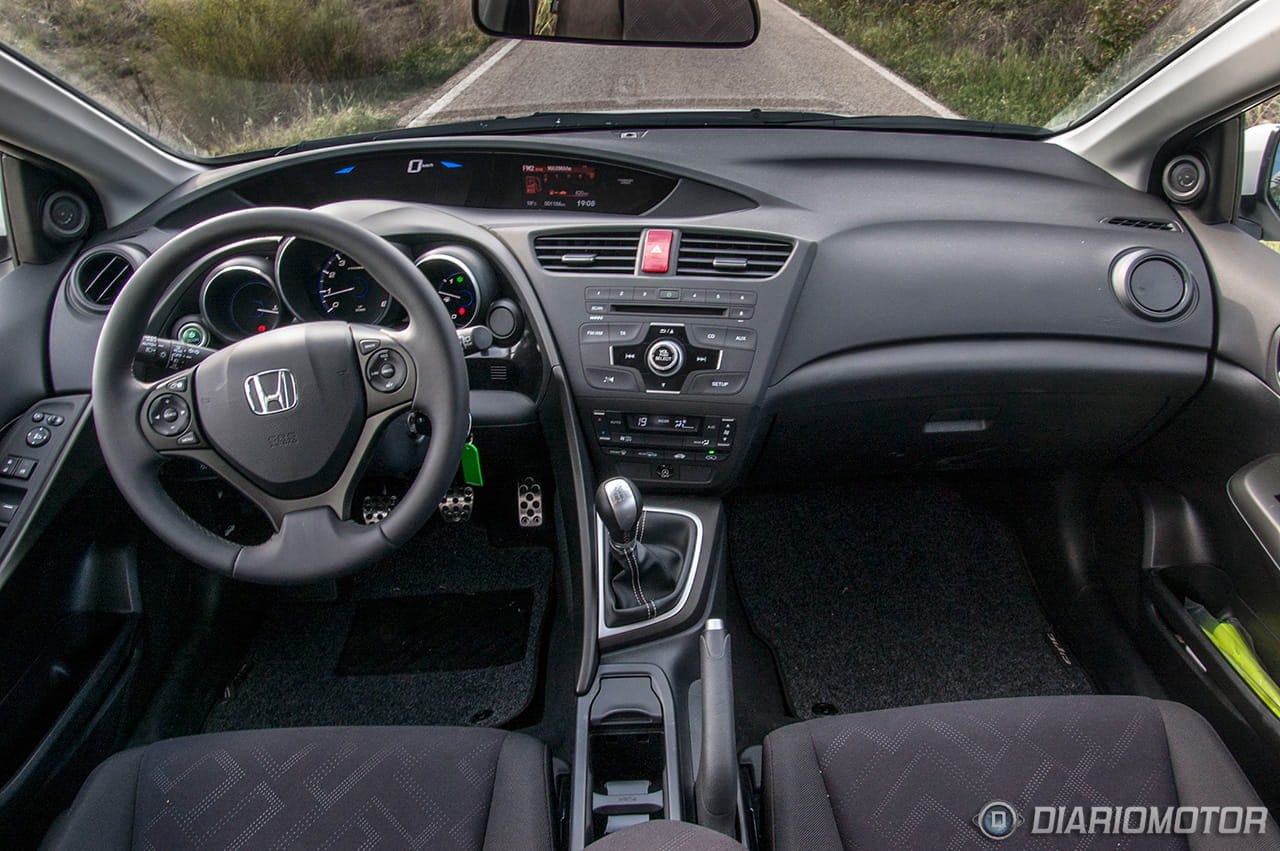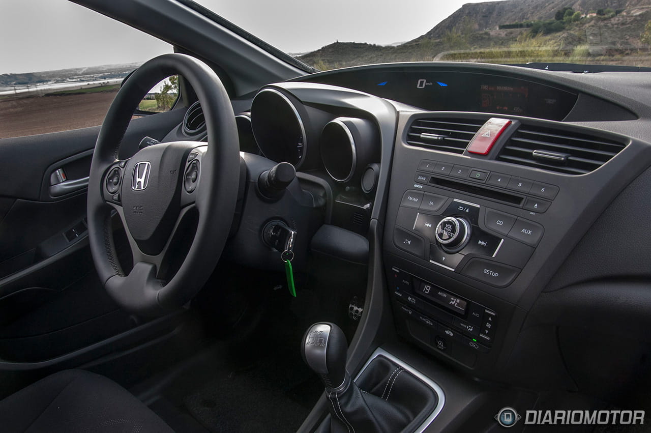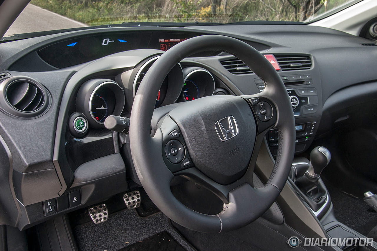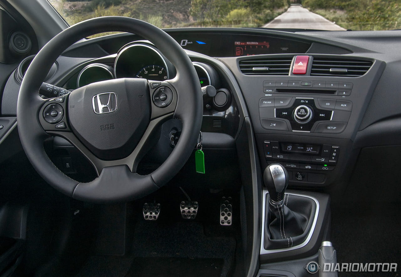 El Honda Civic Sport (+ 1.600/1.700€), el empleado en nuestra prueba, incluye luces antiniebla delanteras, volante multifunción con acabado en cuero, climatizador bizona (de serie sólo para el 1.8 i-VTEC y 2.2 i-DTEC), sensor de lluvia, autoencendido de luces, alarma y control de velocidad de crucero y limitador de velocidad.
