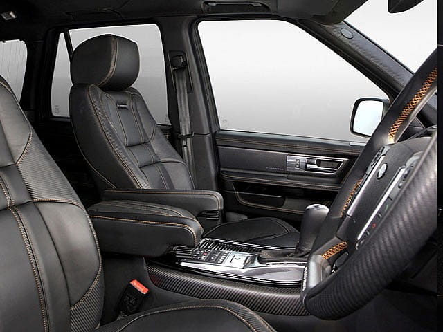 Un detalle muy importante es la reducción de la altura del Range Rover Sport gracias a la utilización de nuevas suspensiones, lo cual da al coche un toque mucho más deportivo ya que va más pegado al suelo. El resto de modificaciones estéticas nos las encontramos en el habitáculo, donde se han añadido numerosas inserciones en fibra de carbono y costuras del cuero en color naranja, a juego con la carrocería. La instrumentación también está iluminada en color naranja y nos encontramos el logotipo de Overfinch en varias zonas.