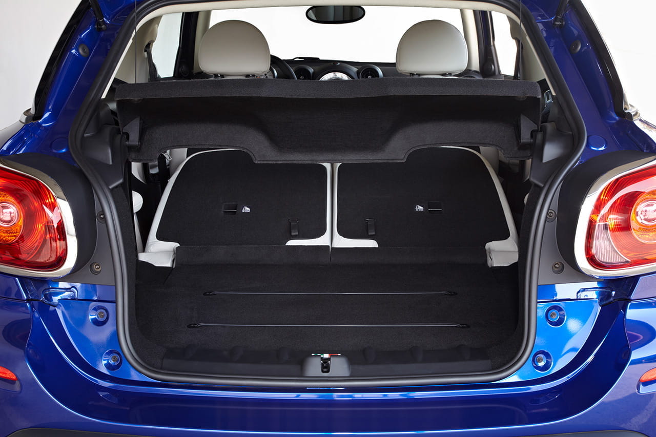 A diferencia del Mini Countryman, disponible con sendas versiones de cuatro y cinco plazas, el Mini Paceman es estrictamente de cuatro plazas, que están separadas por el característico rail central Mini Center Rail. El espacio de carga del maletero es de 330 litros que pueden crecer hasta 1.080 abatiendo asientos.