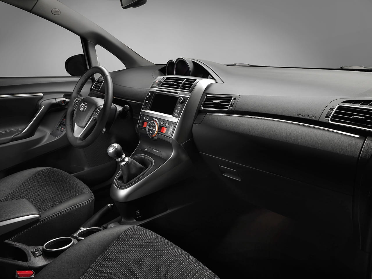 La disposición de los elementos en el habitáculo del Toyota Verso no ha cambiado, de hecho las novedades más importantes conciernen a los materiales empleados en el salpicadero y los revestimientos, y los tapizados de paneles y asientos. Toyota ha querido mejorar ligeramente la calidad del habitáculo manteniendo el diseño ergonómico de que ya gozaba hasta ahora, con un cuadro de mandos centrado sobre el salpicadero y orientado al conductor, pero mejorando los materiales y aumentando las posibilidades de los acabados que se ofertan.