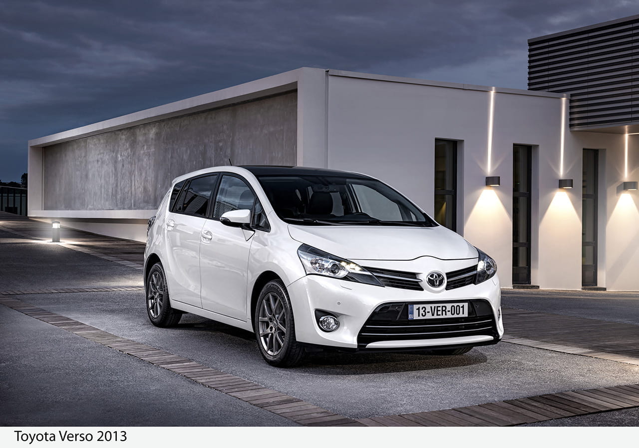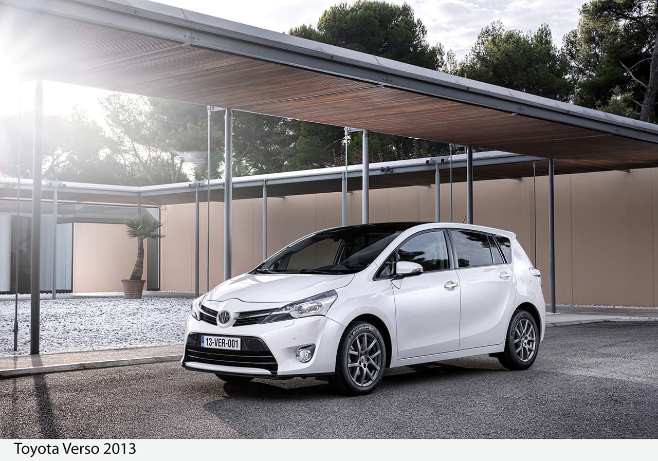 El estreno de la nueva generación de Toyota Auris y su variante familiar, Auris Sports Wagon, es un momento oportuno para presentar una completa actualización del Toyota Verso en el ecuador del ciclo comercial de este monovolumen. La ofensiva en el segmento compacto de Toyota se completa con el lanzamiento del Toyota Verso 2013 que adquiere la nueva imagen de marca, un habitáculo re-diseñado, ajustes en el chasis con el confort como objetivo primordial y mejoras en las mecánicas destinadas a aumentar su eficiencia.