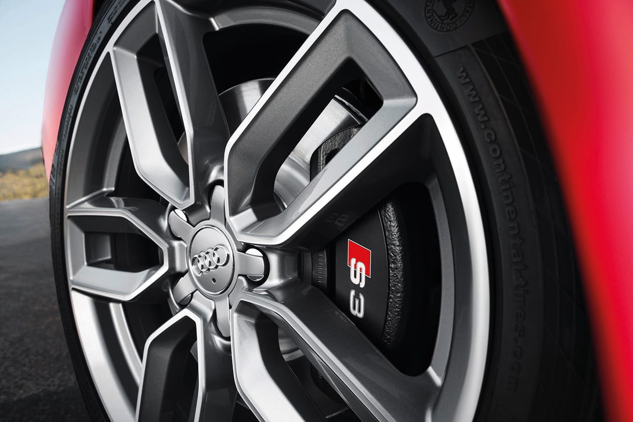 El trabajo del chasis pasa por unas suspensiones rebajadas en 25 milímetros respecto al Audi A3 y el empleo de la nueva plataforma compacta del Grupo Volkswagen. Tras las llantas de 18” y los neumáticos 225/40, se dejan ver unos discos de freno de 340 milímetros.