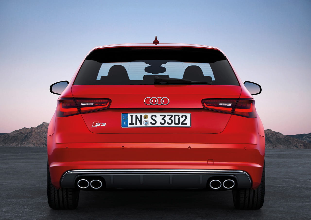 En su carrocería salta a la vista que Audi ha rescatado de nuevo los detalles más deportivos de la línea S de Quattro GmbH. Un detalle interesante es que opcionalmente podremos contar con iluminación completa de tipo LED. Existirán catorce colores diferentes para la carrocería, entre ellos dos exclusivos para el Audi S3 denominados Panther Black (negro pantera) y azul Estoril Blue.
