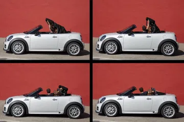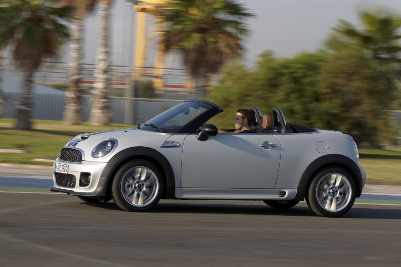 En un intento, tal vez, de demostrar al mundo que ellos también pueden tener su propio Miata, o al menos un pequeño deportivo descapotable que en ciertos aspectos (y no todos) pueda seguir la filosofía del Mazda MX-5, el Mini Roadster se convirtió en la alternativa de dos plazas al Mini Cabrio. No deja de ser un Mini Coupé que ha sustituido su techo fijo por uno de lona manual que se puede plegar sin bajarnos del habitáculo. No obstante es todo un acierto optar por este antes que por un Mini Cabrio, cuyas plazas traseras son muy escasas y poco prácticas.