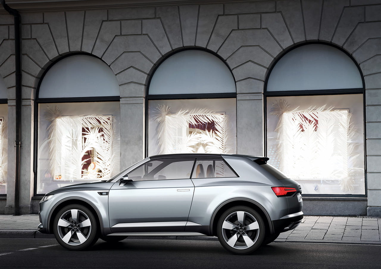 Ante nosotros el Audi crosslane coupé se presenta como un SUV muy compacto, de tan sólo 4.21 metros de longitud (18 centímetros menos que un Audi Q3). Su carrocería es de tres puertas y su habitáculo ha sido diseñado para alojar a cuatro pasajeros. Como se aprecia en las imágenes se trata de un descapotable que cuenta con un techo desmontable de tipo targa. El objetivo de Audi a medio y largo plazo muy probablemente sea el de disponer de una gama más competitiva que rivalice directamente con el exitoso Range Rover Evoque.