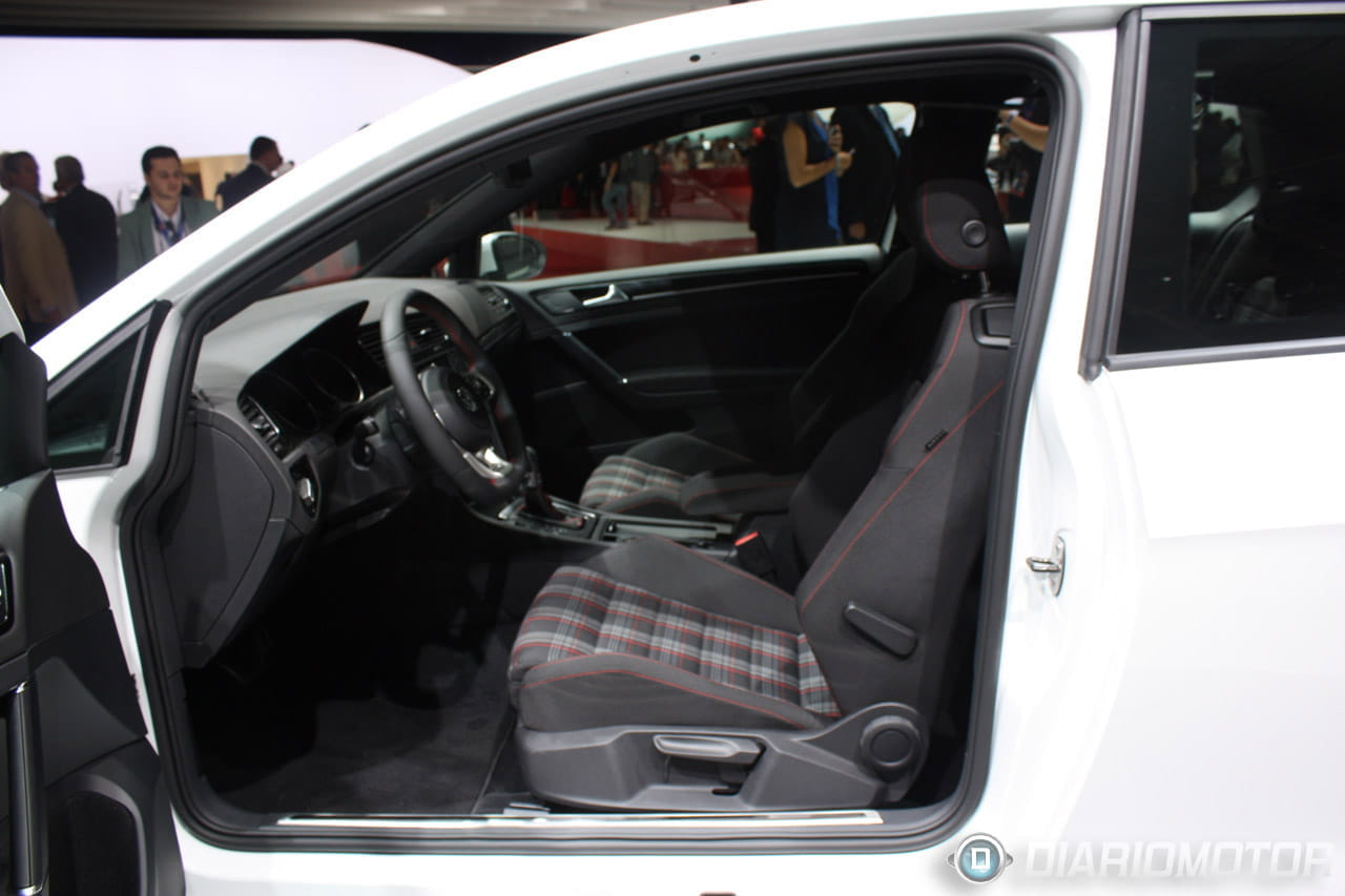 La unidad que pudimos ver en París lucía el clásico color blanco “Candy White”, y tampoco faltan en el nuevo GTI la tapicería interior de cuadros, el volante achatado en su parte inferior con costuras rojas o los pedales de aluminio. En su exterior, destacan la doble salida de escape, la parrilla con forma de nido de abeja cruzada por la línea roja, en su frontal, o las ópticas LED completas.