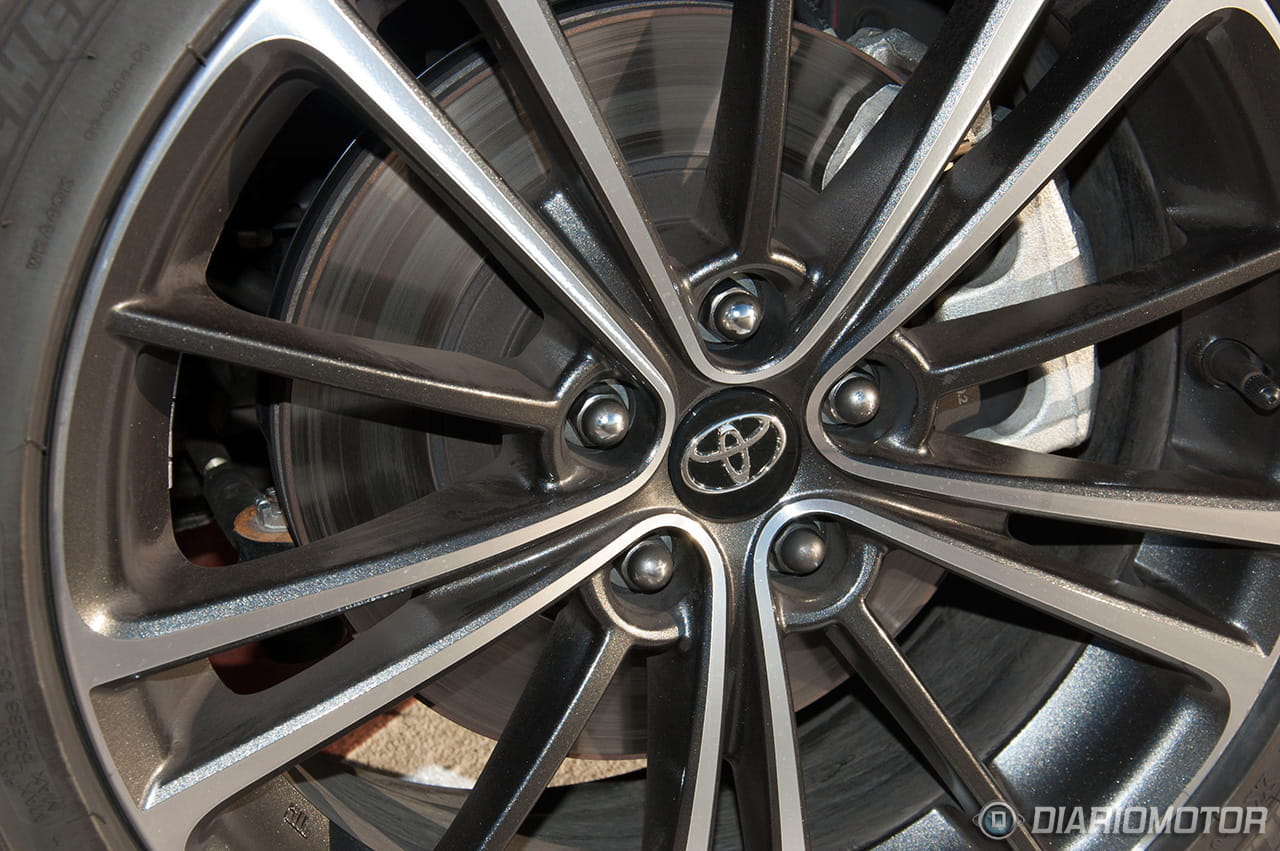 Sus faros achinados, su aerodinámico frontal, el diseño de sus llantas, el alerón posterior o el exagerado difusor en la zaga con dos salidas de escape generosas escoradas cada una a cada lado, lo convierten en una pieza no apta para cualquiera que valore la discreción. Capta miradas y no pasa desapercibido allá por donde pasa. El color rojo de la carrocería de nuestra unidad de pruebas es también llamativo, aunque no el que más, y el único que no tiene un coste añadido de 525€ por el metalizado. Hay colores más discretos, pero metalizados, como un blanco nacarado, plata, gris oscuro, negro, azul, y por último el que probablemente será el más llamativo de todos, el naranja heihachi que prácticamente se convirtió en la seña de identidad del Toyota para prestar el protagonismo del azul a su hermano el Subaru BRZ.