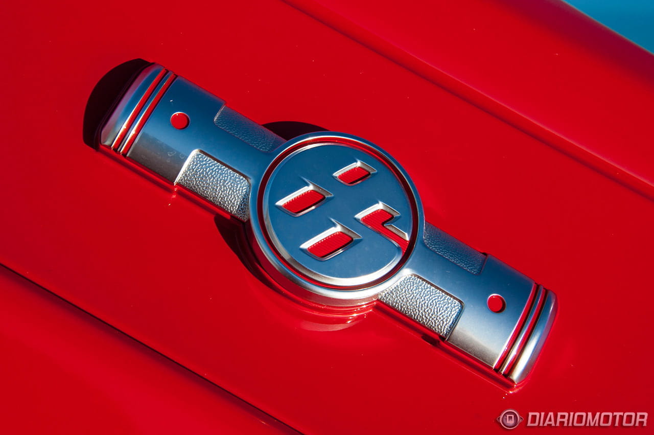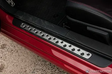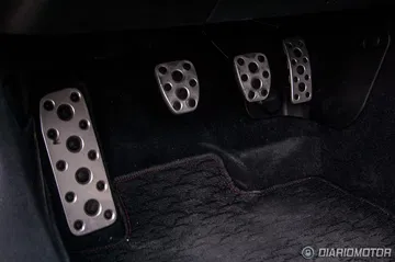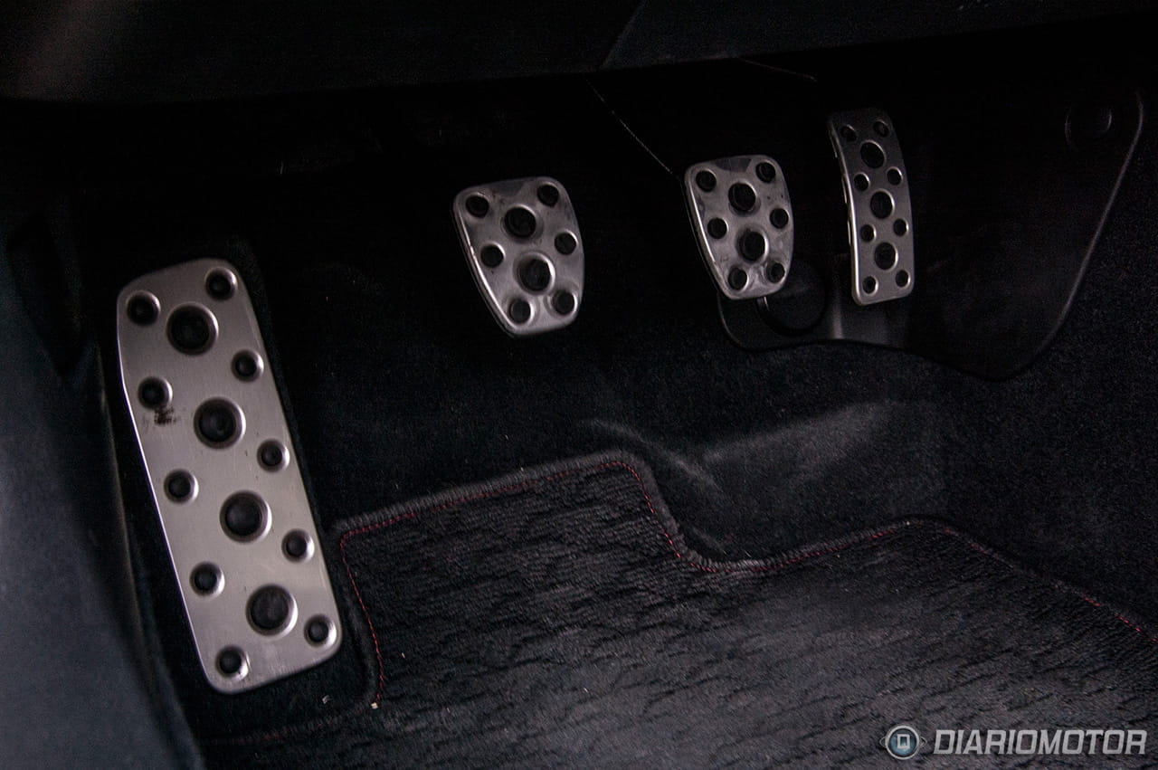 El salpicadero tiene una pieza de plástico que imita a fibra de carbono – sin demasiados esfuerzos – con un tratamiento mate. Sencillo y práctico, sin más. Mucho mejor el detalle de calidad de los pedales cubiertos de aluminio que también se emplea en la protección del alféizar de las puertas o los agarradores de las puertas, en las que también hay zonas forradas de imitación a piel con costuras visibles.