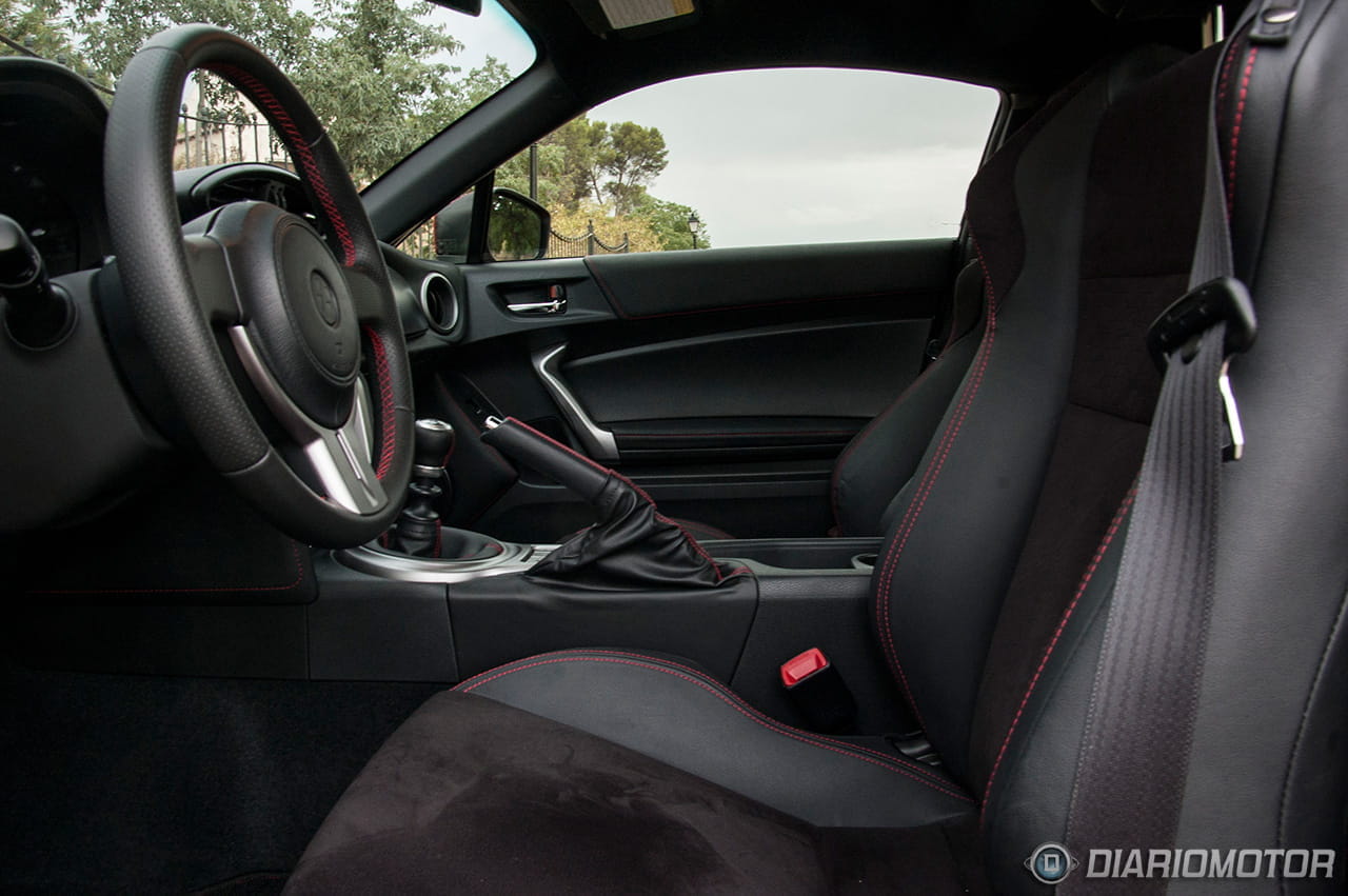 Subir a su habitáculo requiere ciertas dotes de contorsionismo, no más que en la mayoría de los deportivos pero sí con más dificultades que en ciertos coupés como un Audi A5 Coupé o un Mercedes Clase C Coupé. El puesto de conducción extremadamente bajo y los asientos deportivos no ayudan con sus orejas laterales, pero serán nuestro mayor aliado a la hora de afrontar fuerzas laterales intensas, algo para lo cual el Toyota GT 86 está bien dotado.