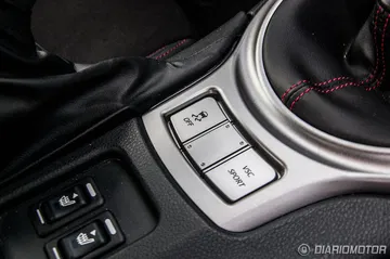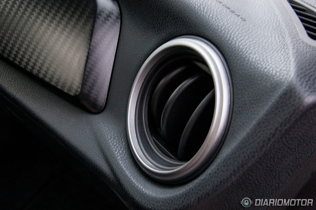 Los botones del control de tracción y el modo deportivo del control de estabilidad también están en una posición accesible, bajo la palanca de cambios. Más adelante entraremos en detalle sobre su utilización. Cuenta con climatizador bizona al cual accedemos mediante unos pulsadores de tipo leva oscilante y toque muy deportivo, similares por ejemplo a los del Alfa Giulietta.