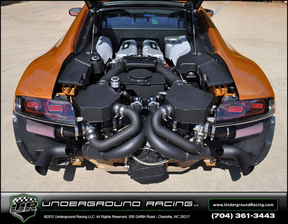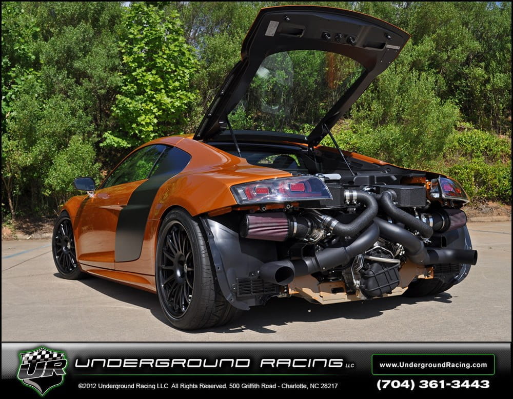 En esto de sacar potencia sin compasión, Underground Racing no paran de presentar propuestas, casi siempre sobre la base del twin-turbo. Ya lo vimos con aquel Lamborghini Gallardo Twin Turbo por Underground Racing, con más de 1.500 CV, y ahora tenemos aquí otra prueba, si bien ligeramente más comedida en potencia (si se le puede llamar así a un vehículo con un millar de caballos). Es el caso de este Audi R8 GT Twin Turbo, un trabajo hecho por encargo que ya está en el garaje de algún acaudalado coleccionista de los Emiratos Árabes (dónde si no…)