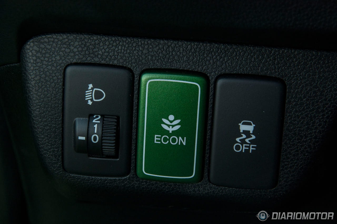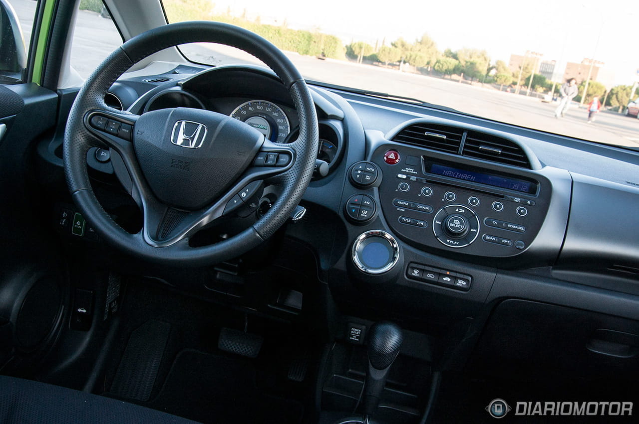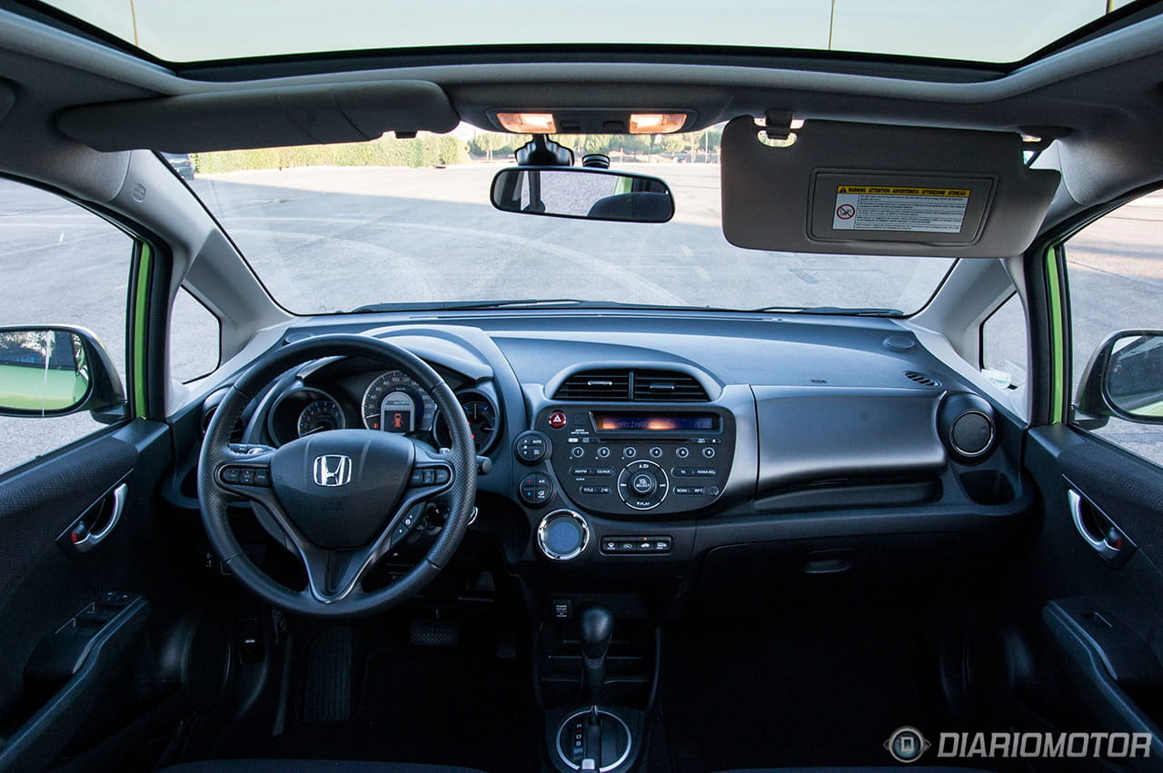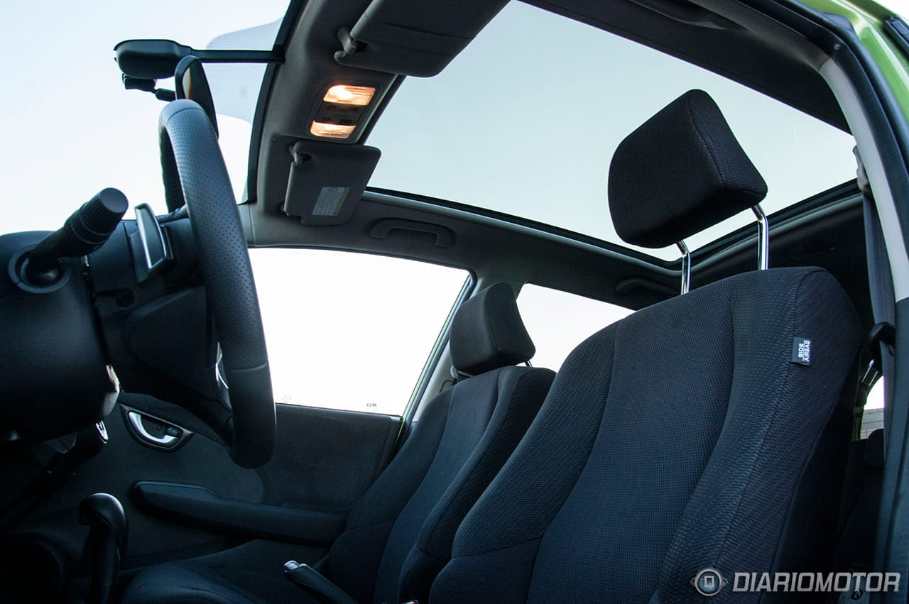 Una vez te subes al puesto del conductor ya entiendes una de las primeras peculiaridades del Honda Jazz, pues la posición elevada de la base del asiento prima la conducción característica de un monovolumen, con el cuerpo erguido y dominando desde “las alturas” la carretera. No obstante la altura con el techo es suficiente para que un conductor relativamente alto no tenga problema alguno para encontrar su posición idónea, al menos teniendo en cuenta la versión con techo panorámico que con la apertura del protector solar gana unos centímetros de espacio vertical.