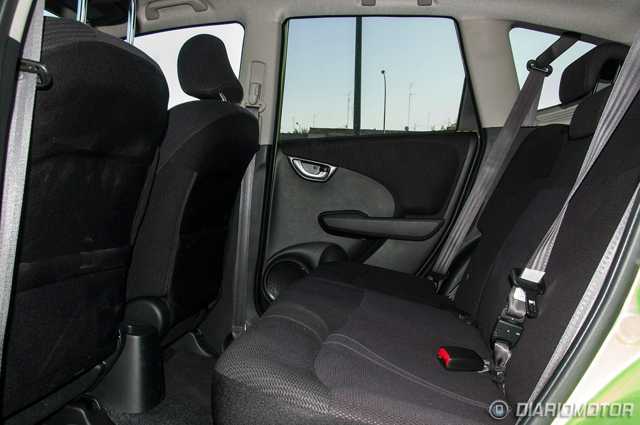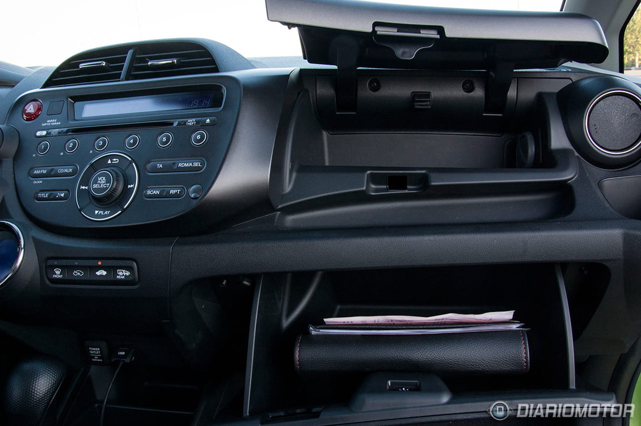 La mayor ventaja del Honda Jazz y el punto en el que a mi parecer gana mucho respecto a sus rivales está en la habitabilidad y la distribución del espacio de carga. Dentro de su pequeño habitáculo las plazas delanteras cuentan con bastantes huecos portaobjetos, por ejemplo los clásicos posavasos integrados en el salpicadero y en la consola central tras el selector del cambio automático (y la palanca de cambios en los modelos manuales). También cuenta con una guantera dividida en dos piezas, una inferior y otra superior d emenor tamaño.