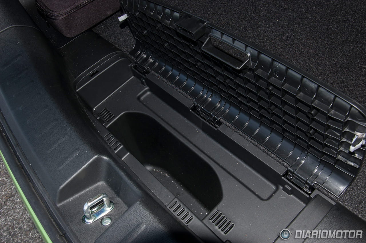 Lo mejor de todo es sin duda la flexibilidad de la banqueta posterior que nos permite dividirla en dos piezas de 60/40 y abatir los asientos de dos formas diferentes. La primera y común con muchos otros utilitarios, es la que nos permite tumbar los respaldos para extender el maletero con un suelo plano solidario a una base que en los modelos no híbridos presenta un doble fondo de aproximadamente 40 litros de volumen.
