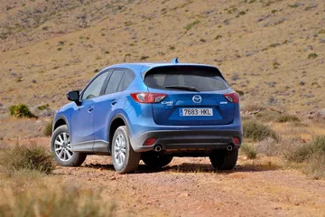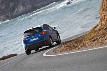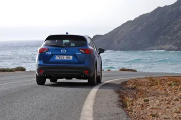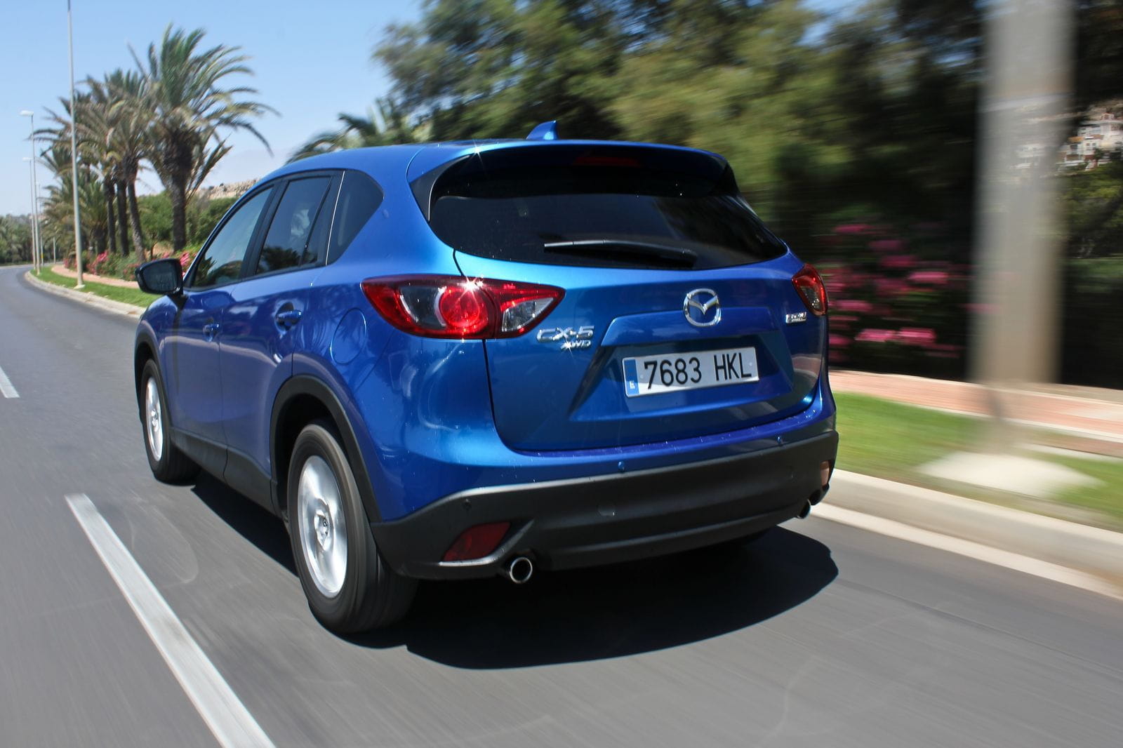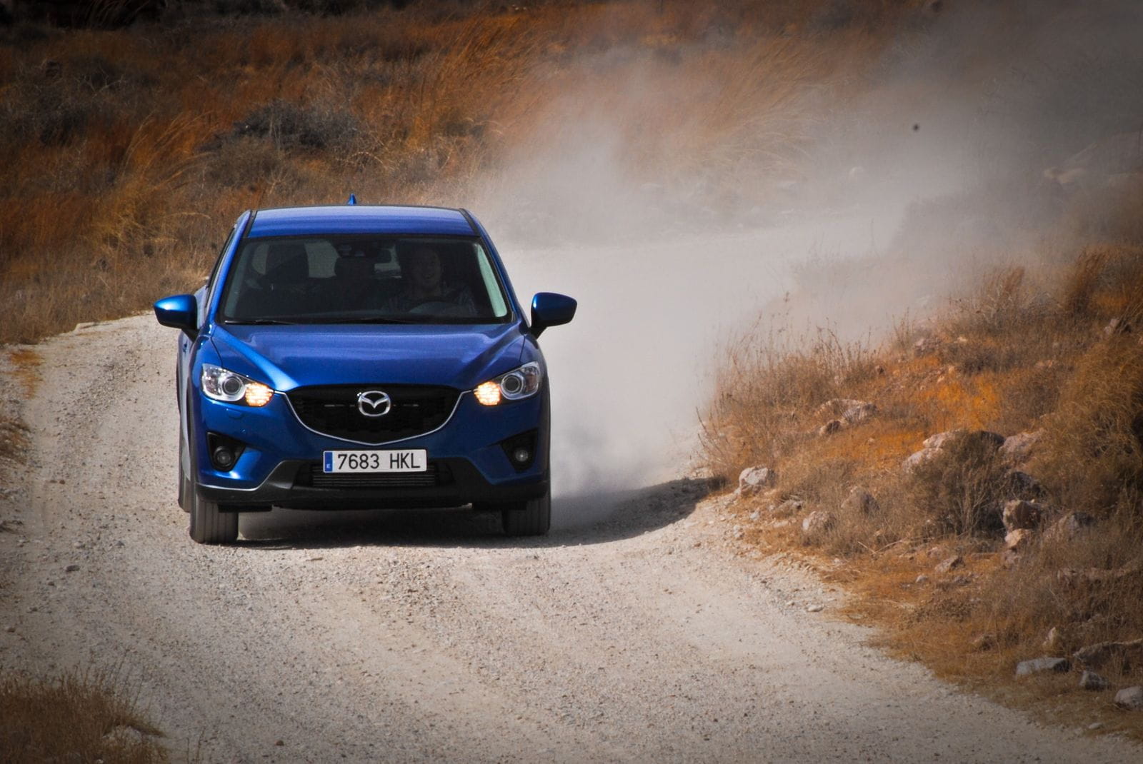 El ángulo de entrada es de sólo 18,6º, a pesar de contar con 210 mm de altura libre al suelo, los largos voladizos son la causa de que no sea el vehículo más apto para surcar terrenos complicados. Las pistas no supondran ningún problema, y los pequeños obstáculos tampoco, la tracción y motricidad son buenas. De todas formas, en el interior se notan los baches, la suspensión del Mazda CX-5 está pensada para el asfalto y advertimos que es un coche que se encuentra mejor en carretera, algo extrapolable a las versiones de gasolina.