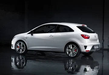 El kit de carrocería del Ibiza CUPRA acentúa los rasgos introducidos con el MY 2012. Las nuevas ópticas quedan bastante bien con el nuevo conjunto estético frontal. Nuevos detalles en la parrilla, una superficie refrigerada mayor y pasado a su zaga, deteniéndonos antes en sus llantas de 17 pulgadas con diseño de 5 radios dobles, nos encontramos con un difusor y la salida de escape central.