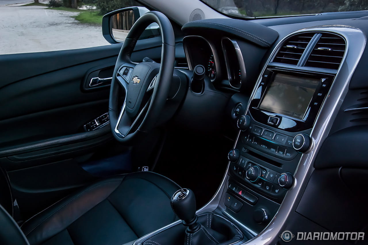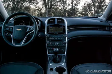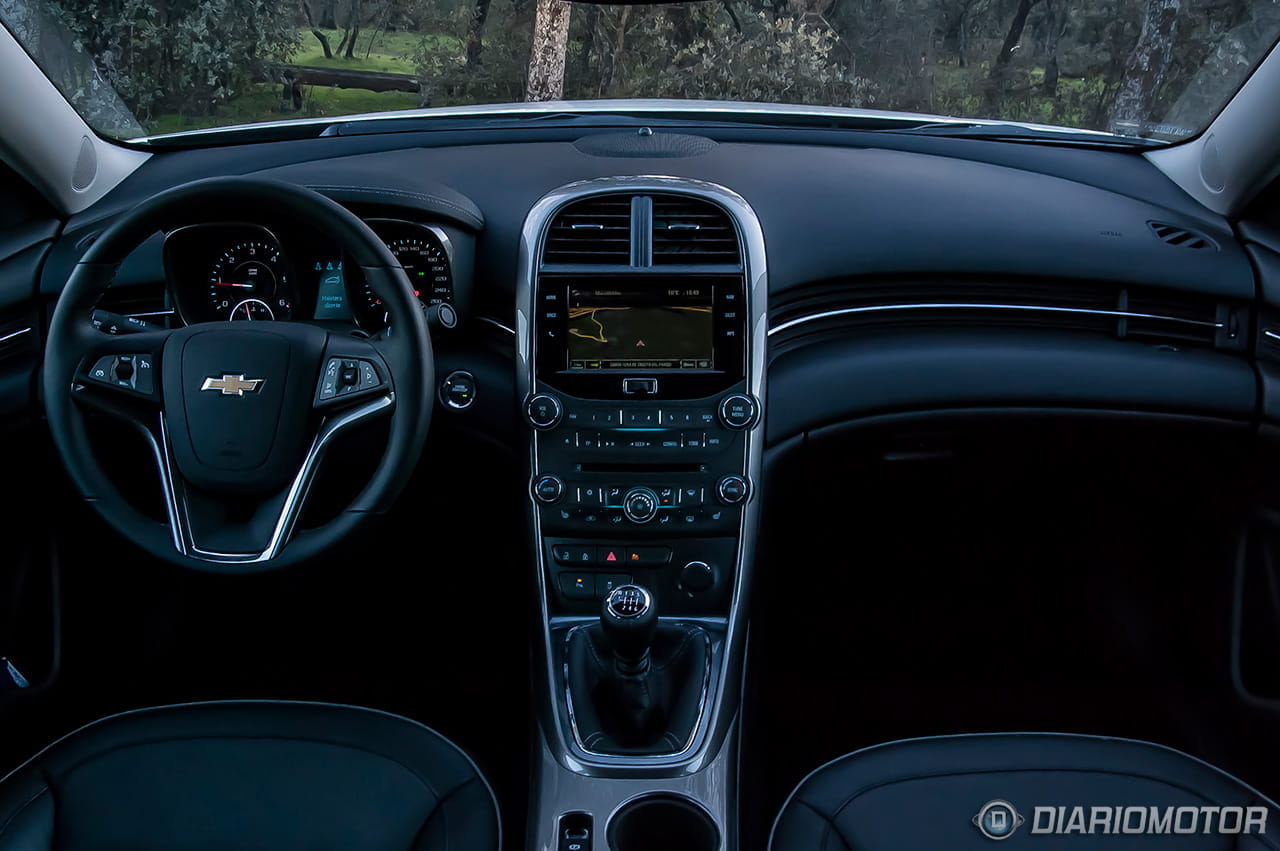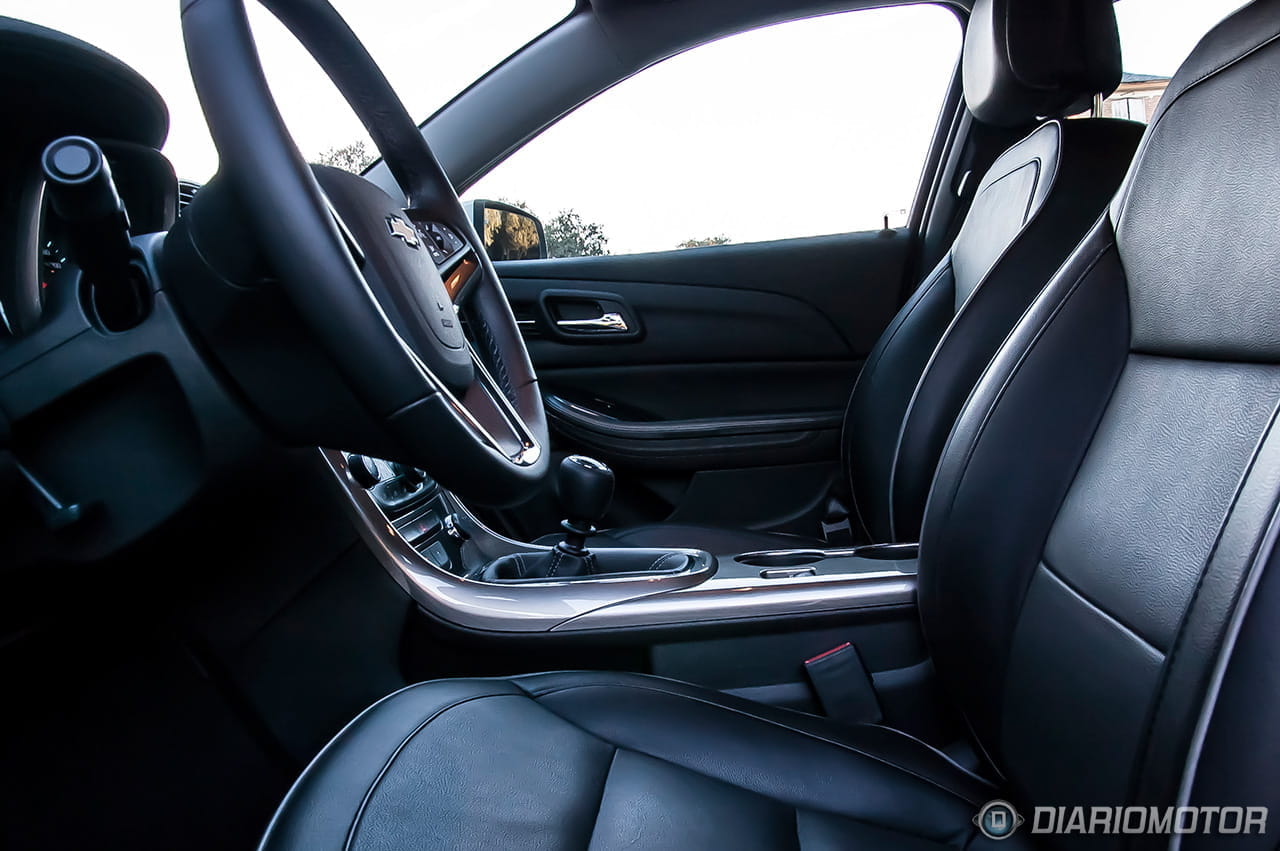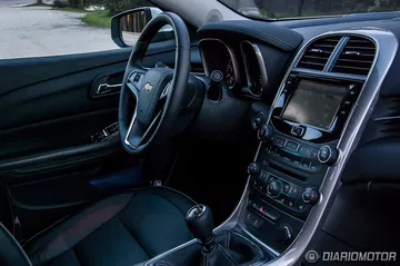 Si por fuera el Chevrolet Malibu ya revela su carácter americano, en el interior lo confirmamos con el diseño inteligente, pero sobrio, del salpicadero. La zona del acompañante ha sido perfilada con una concavidad que aporta un poco más de espacio para este y una línea cromada, elegante de día y aún más de noche gracias a la iluminación de cortesía azulada que recorre la parte superior de las puertas y el salpicadero.