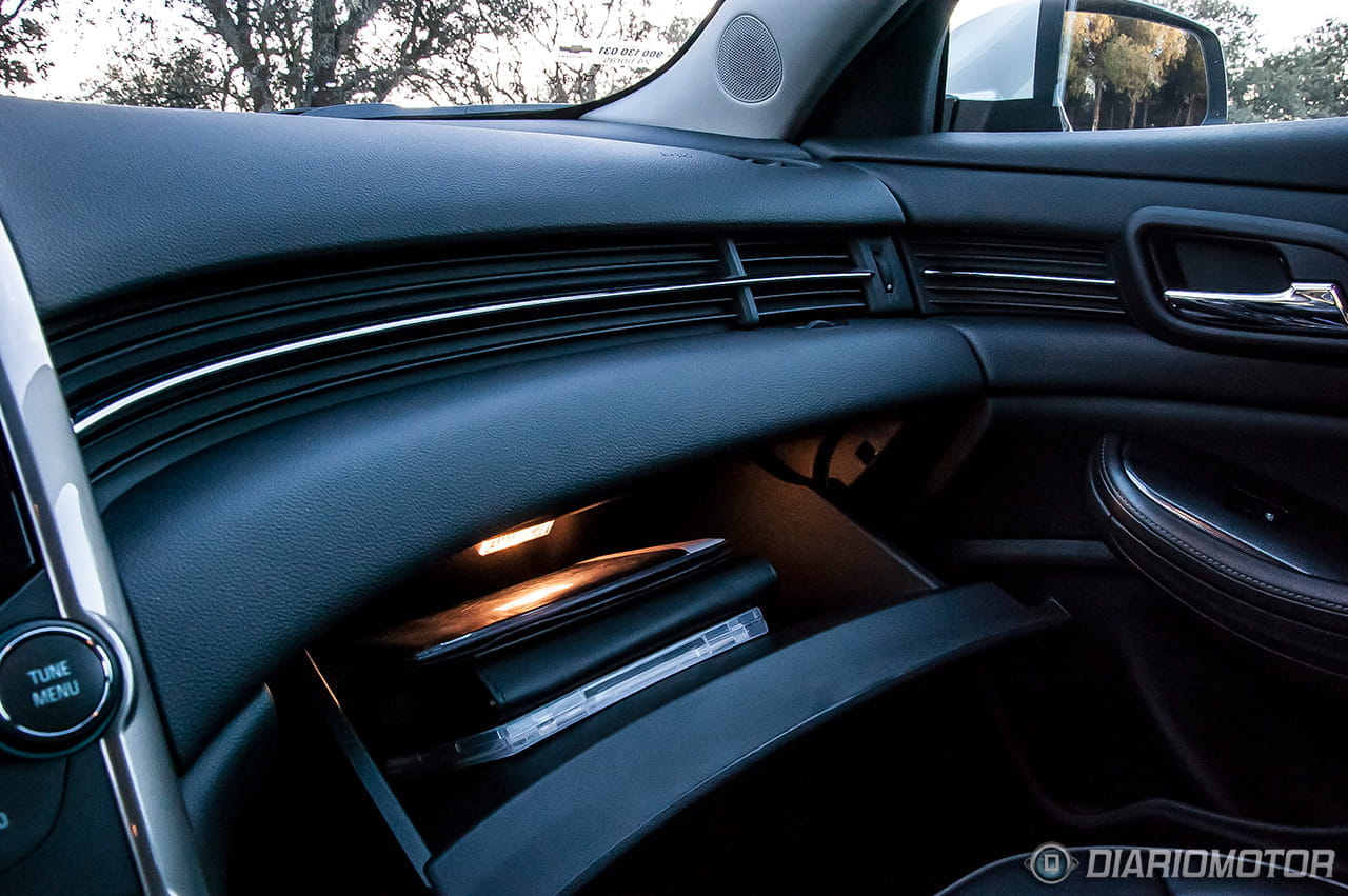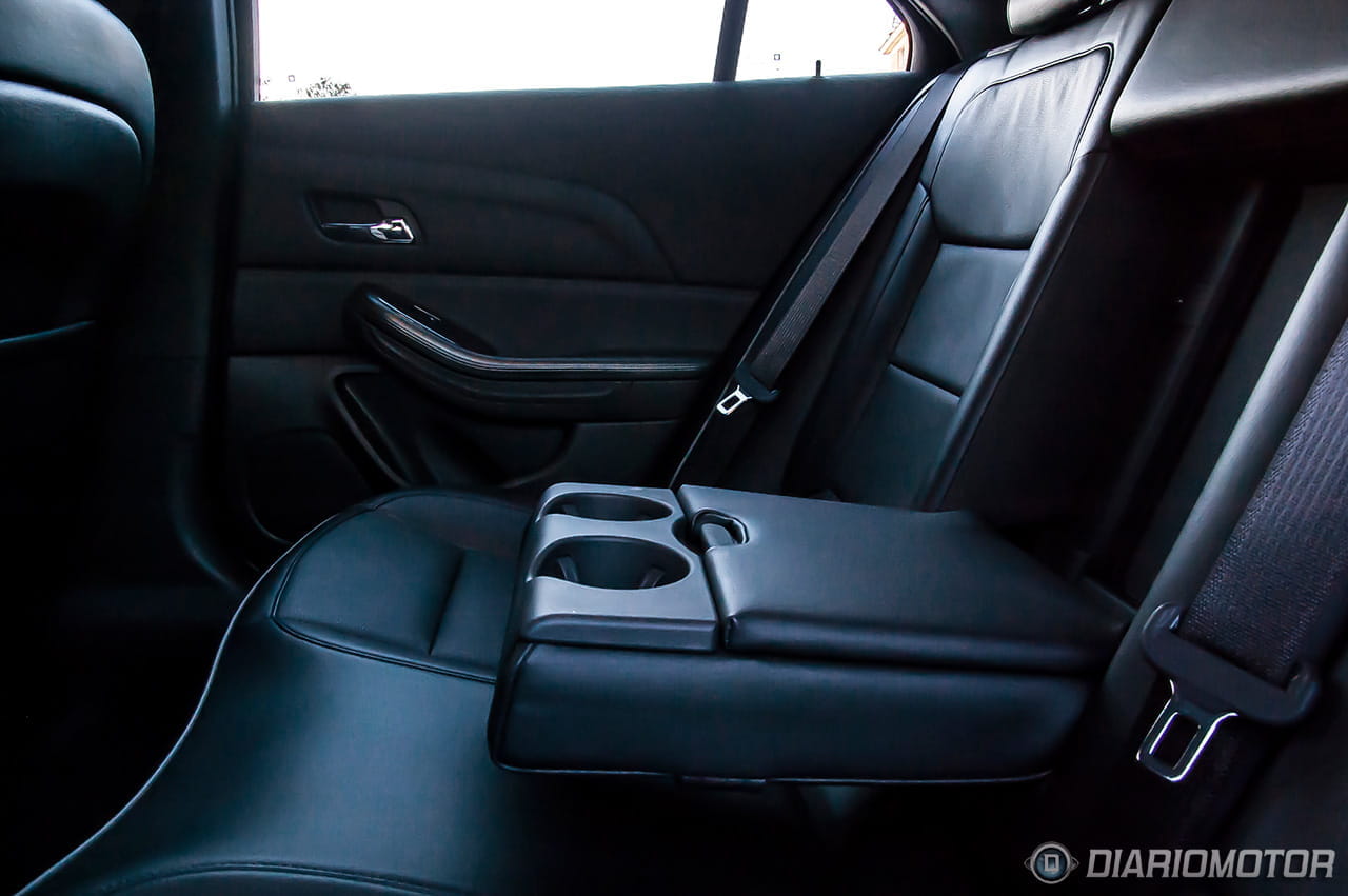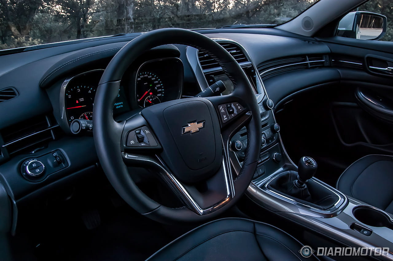 Si por fuera el Chevrolet Malibu ya revela su carácter americano, en el interior lo confirmamos con el diseño inteligente, pero sobrio, del salpicadero. La zona del acompañante ha sido perfilada con una concavidad que aporta un poco más de espacio para este y una línea cromada, elegante de día y aún más de noche gracias a la iluminación de cortesía azulada que recorre la parte superior de las puertas y el salpicadero.