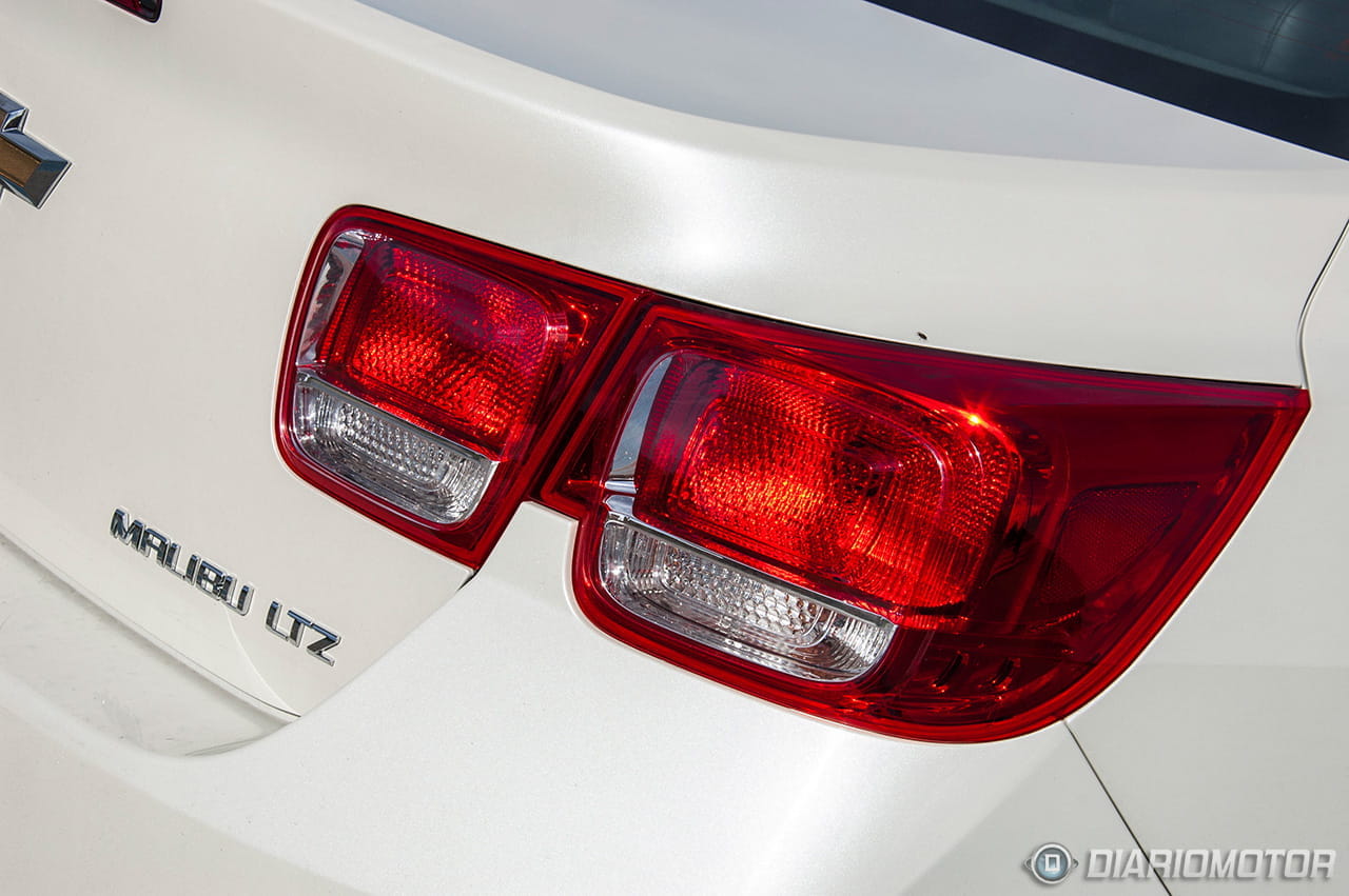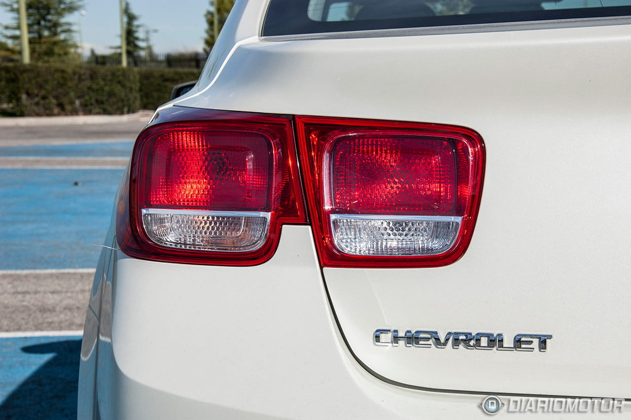 La imagen del Chevrolet Malibu es la de una gran berlina que está cerca de los cinco metros de longitud (4,865 metros, para más señas) y goza de voladizos grandes y prominentes, por delante y por detrás. Su frontal destaca por el carácter de la seña de identidad más importante de Chevrolet, su parrilla partida en dos y la pajarita dorada en el centro. Su zaga por contra, recurre a un detalle si cabe más característico aún, los pilotos cuadrados con ciertas reminiscencias al Chevrolet Camaro.