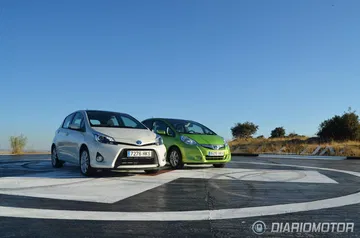 Por cierto, hablando de estética, los colores especiales y metalizados de las unidades probadas, blanco glaciar para el Toyota Yaris y verde lima metalizado para el Honda Jazz cuestan 525 euros y 450 euros respectivamente.