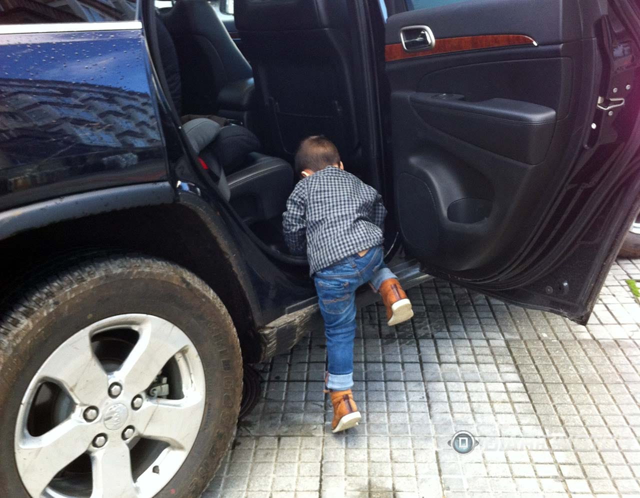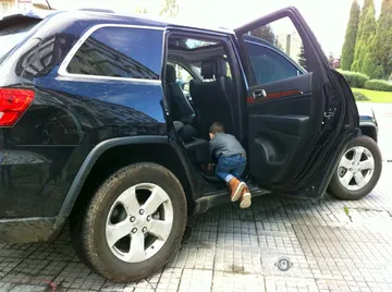 Otros efectos colterales de la altura del coche van apareciendo con el uso diario. Si quiero abrochar el cinturón de mis hijos pequeños en sus respectivas sillas, tendré que hacerlo rodeando el coche, cada uno desde su puerta, porque desde la puerta de uno no llego al cinturón del otro. En un coche de talla normal puedes asomarte por una puerta y asegurar el click de ambos cinturones fácilmente.
