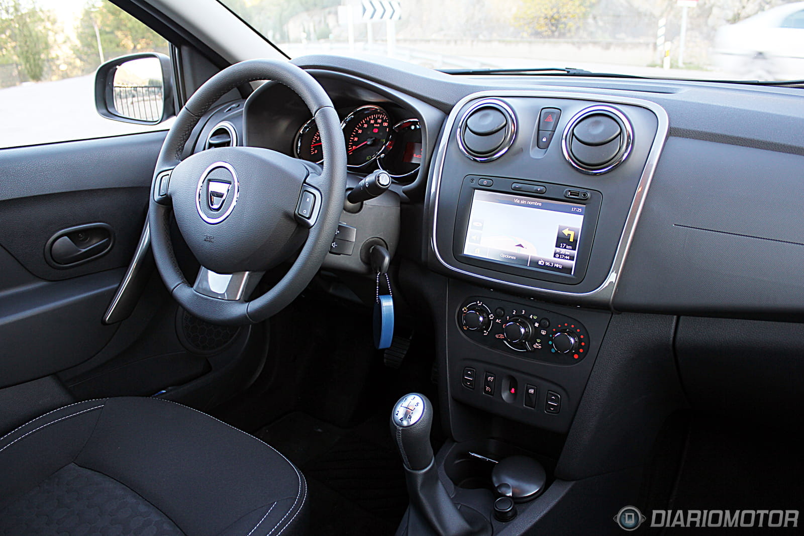 Ambos interiores están calcados entre ellos, y calcados igualmente con el Dacia Logan. Se ha buscado aumentar un 20% la capacidad de los huecos portaobjetos, hasta alcanzar más de 16 litros de capacidad. Algo que, unido a la amplitud general del habitáculo, hace realmente cómodo el interior del Sandero en el día a día. Incluso el maletero, con 320 litros (mayor que el de un Renault Clio), es más que suficiente.