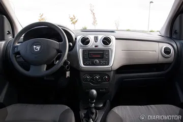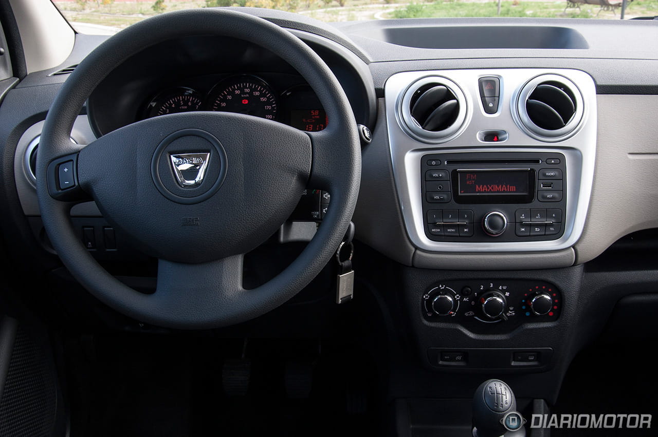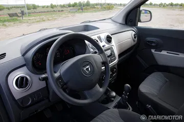 Al acceder al habitáculo nos encontramos con la misma sencillez exterior, tanto en el diseño como en los materiales, ya que básicamente todos los revestimientos emplean plástico duro con tratamiento rugoso que por otro lado aparenta un ajuste aceptable y durabilidad, muy en la filosofía de este Dacia Lodgy que se presenta como un monovolumen ante todo robusto.