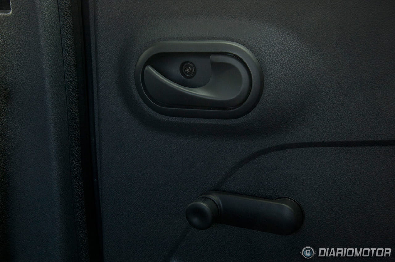 El espacio y esa falta de detalles garantiza contar con numerosos lugares en los que dejar los objetos que llevamos en el bolsillo, por ejemplo, sobre el salpicadero existe una bandeja – menos práctica porque los objetos se moverán con la inercia en las curvas -, una guantera cerrada pequeña con una pequeña bandeja encima, los posavasos tras la palanca de cambios, los bolsillos de las puertas, o el detalle de unos agarradores en sendas puertas delanteras que pueden servirnos para empujar de ellas y cerrarlas o también para dejar el teléfono móvil.