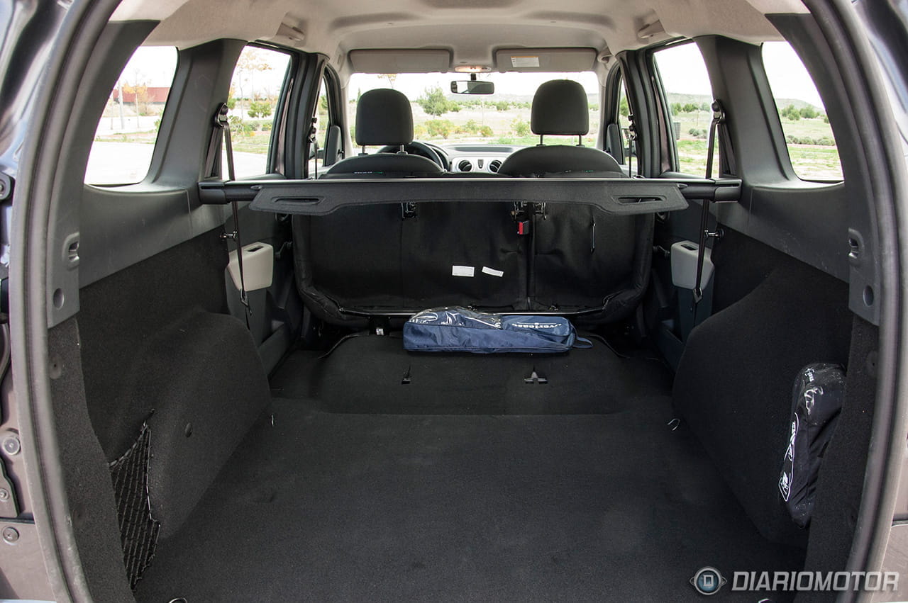 Nosotros tuvimos ocasión de probar el cinco plazas que goza de un volumen de carga sin abatir asientos de 827 litros, superior a Renault Scenic y Renault Grand Scenic. Abatiendo la fila de asientos posterior el espacio aumenta hasta los 2.617 litros, superior incluso al volumen de una Renault Kangoo de tipo furgón (2.300 litros).