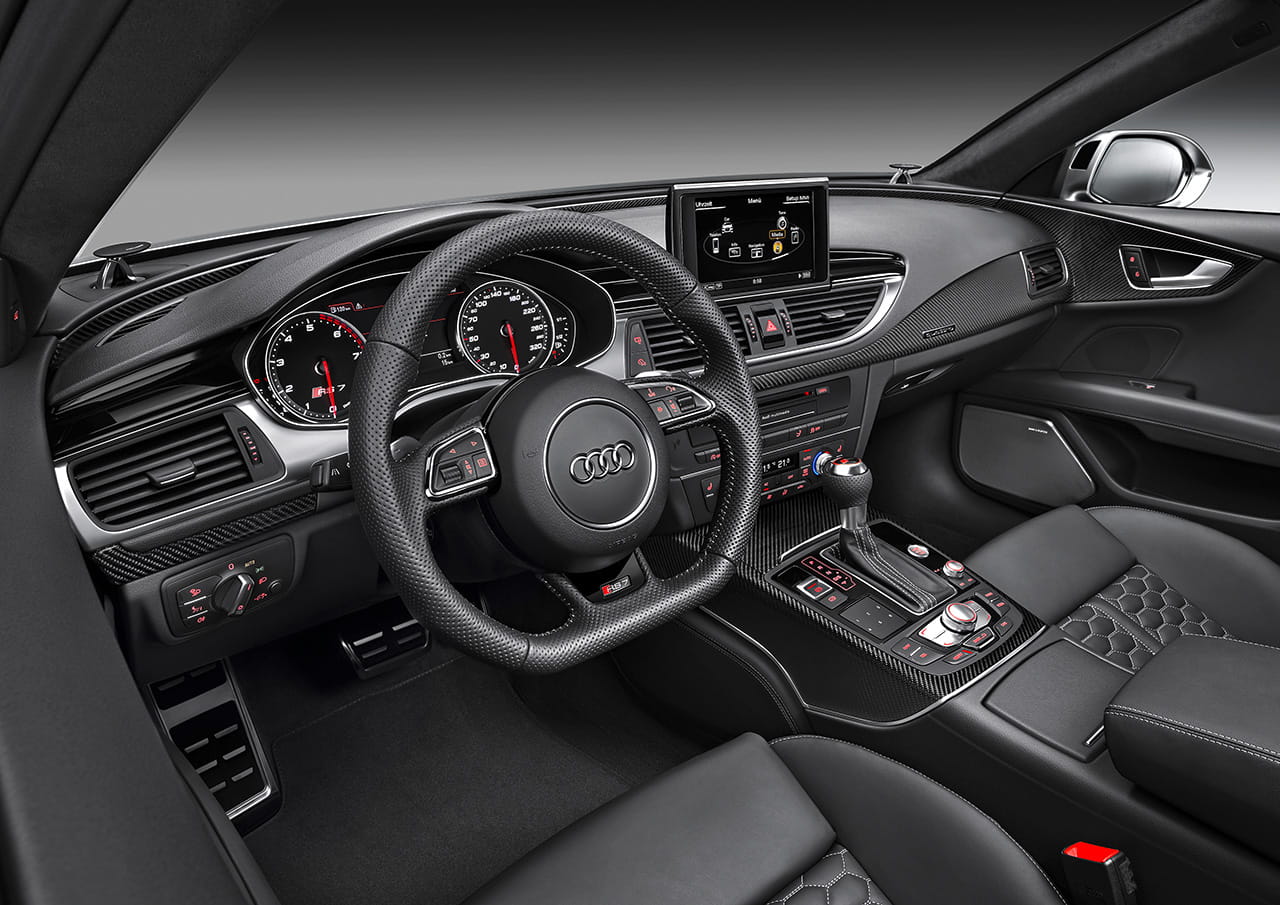 El Audi RS7 Sportback no sorprende a nadie, puesto que a nivel mecánico no presenta novedades respecto al resto de modelos RS. La única novedad destacable es el regreso de una berlina bajo la denominación RS, un hecho insólito desde la anterior generación de RS6. No obstante lo más interesante de la berlina más potente y rápida de Audi está precisamente en sus prestaciones. El RS7 es técnicamente capaz de alcanzar los 305 km/h (sin límite de velocidad, es decir, con paquete dynamic plus) y batir el 0 a 100 km/h en 3,9 segundos. Los datos son similares a los del recién presentado Audi RS6 Avant.