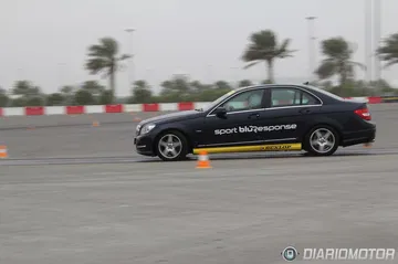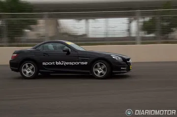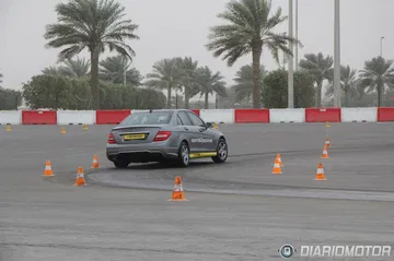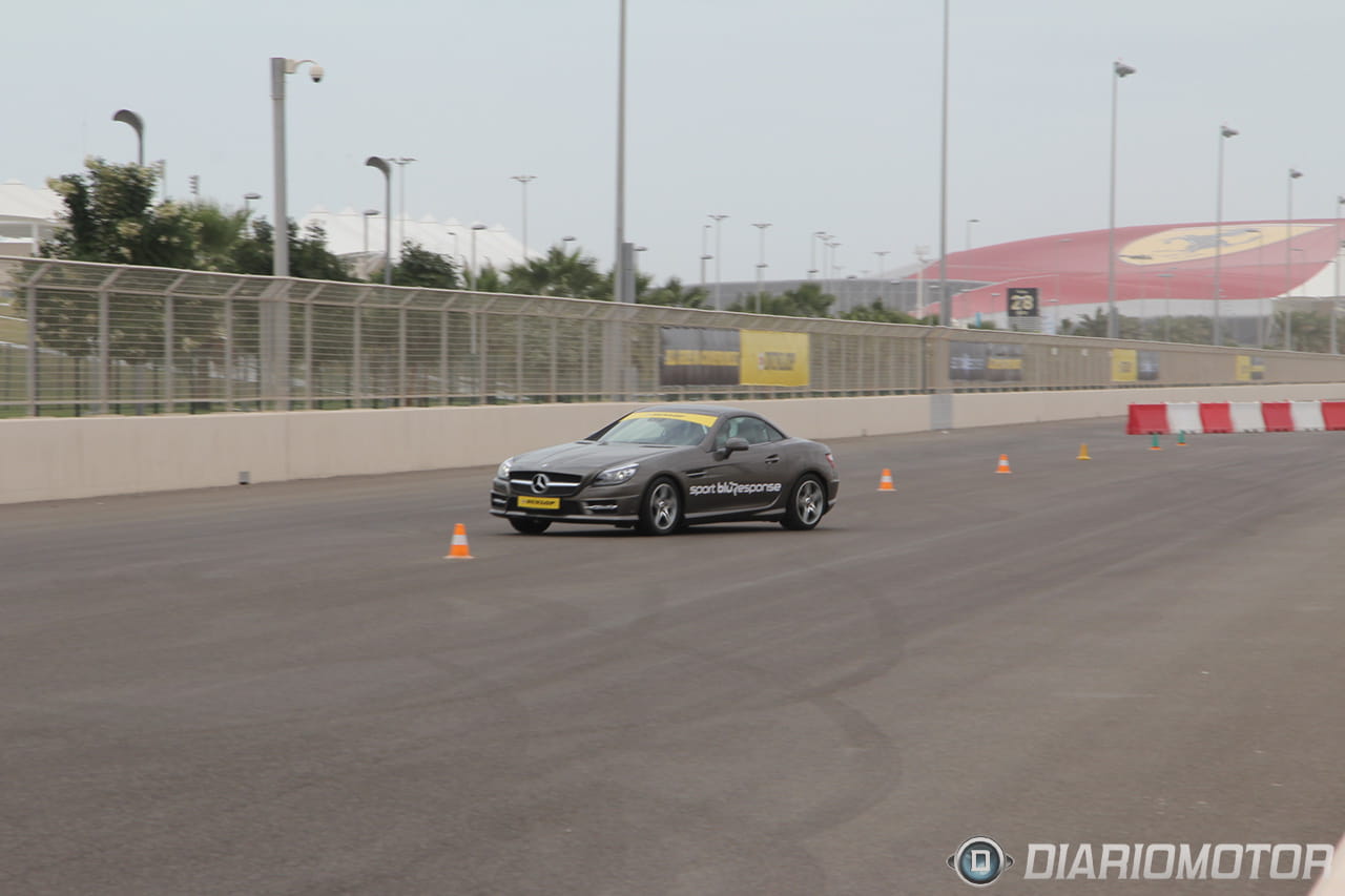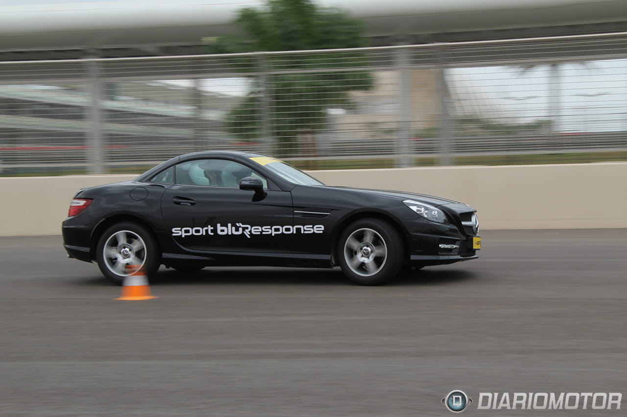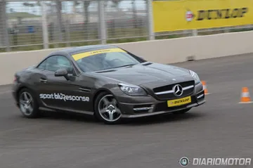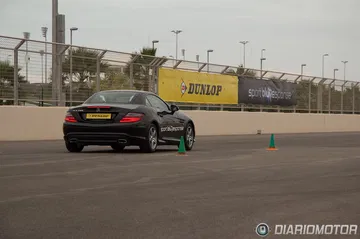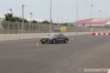 Debo decir que no resulta sencillo ese slalom con los 1.435 kg del SLK, aunque ahí también estaba el interés de la prueba. La clave en estos casos consiste en no ir demasiado rápido para no derrapar demasiado, tiene que ser un derrapaje controlado.